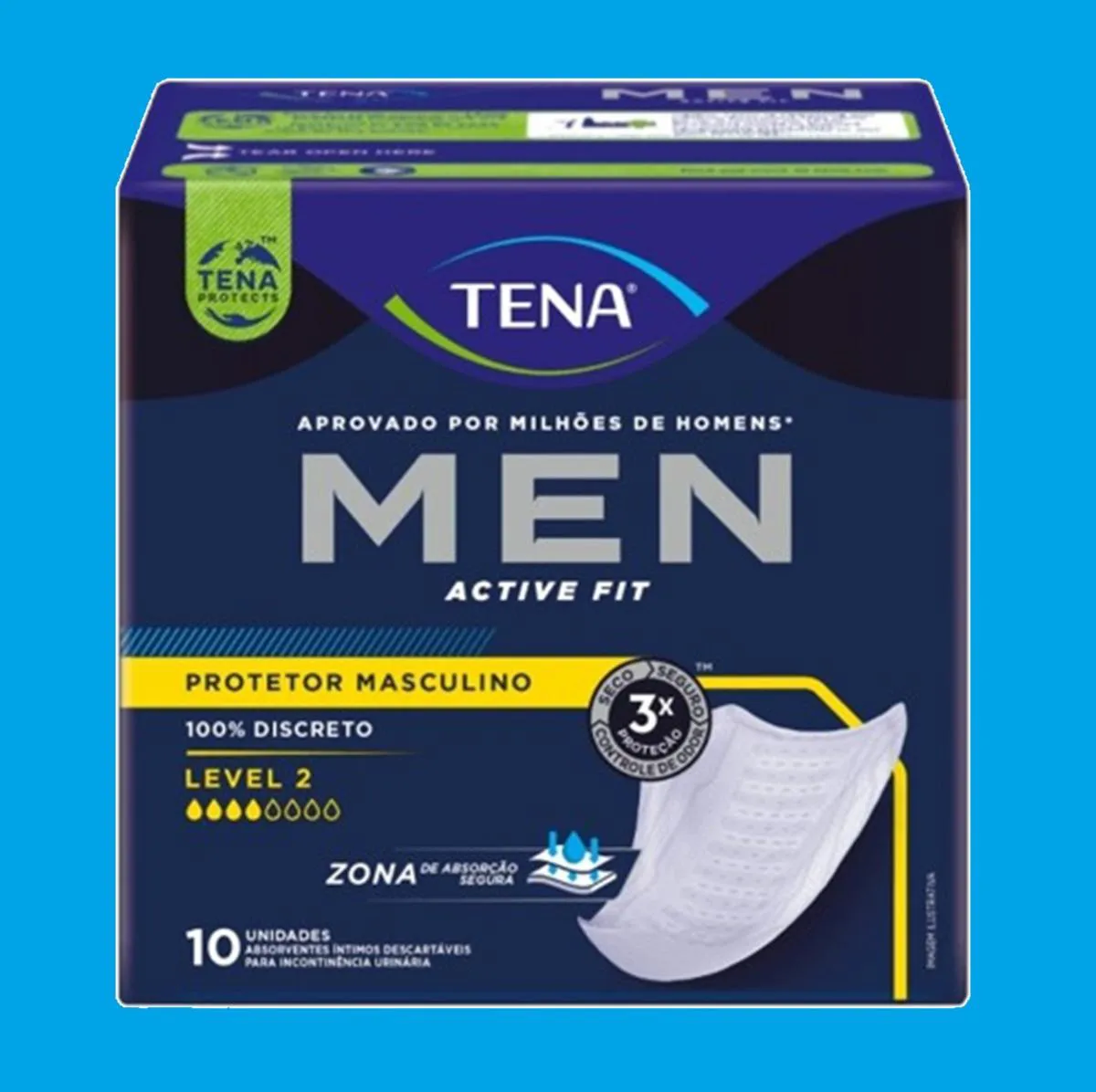 Tripla Proteção: Além da rápida absorção, TENA MEN Active Fit oferece tripla proteção: contra vazamentos, mau odor e umidade.