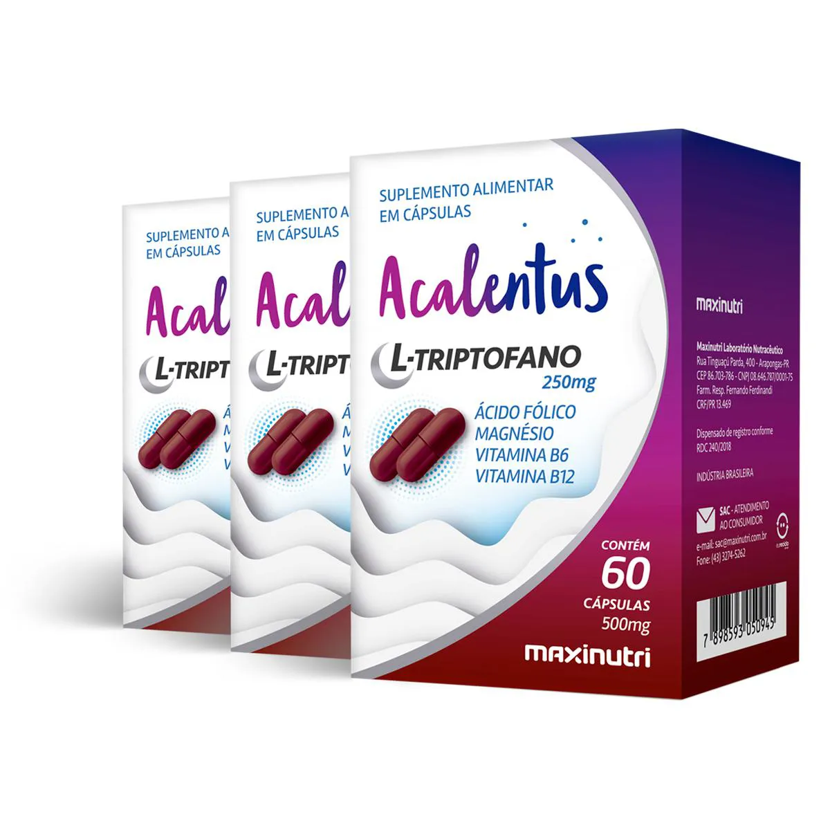 Kit 3 Acalentus L-Triptofano Maxinutri 60 Cápsulas