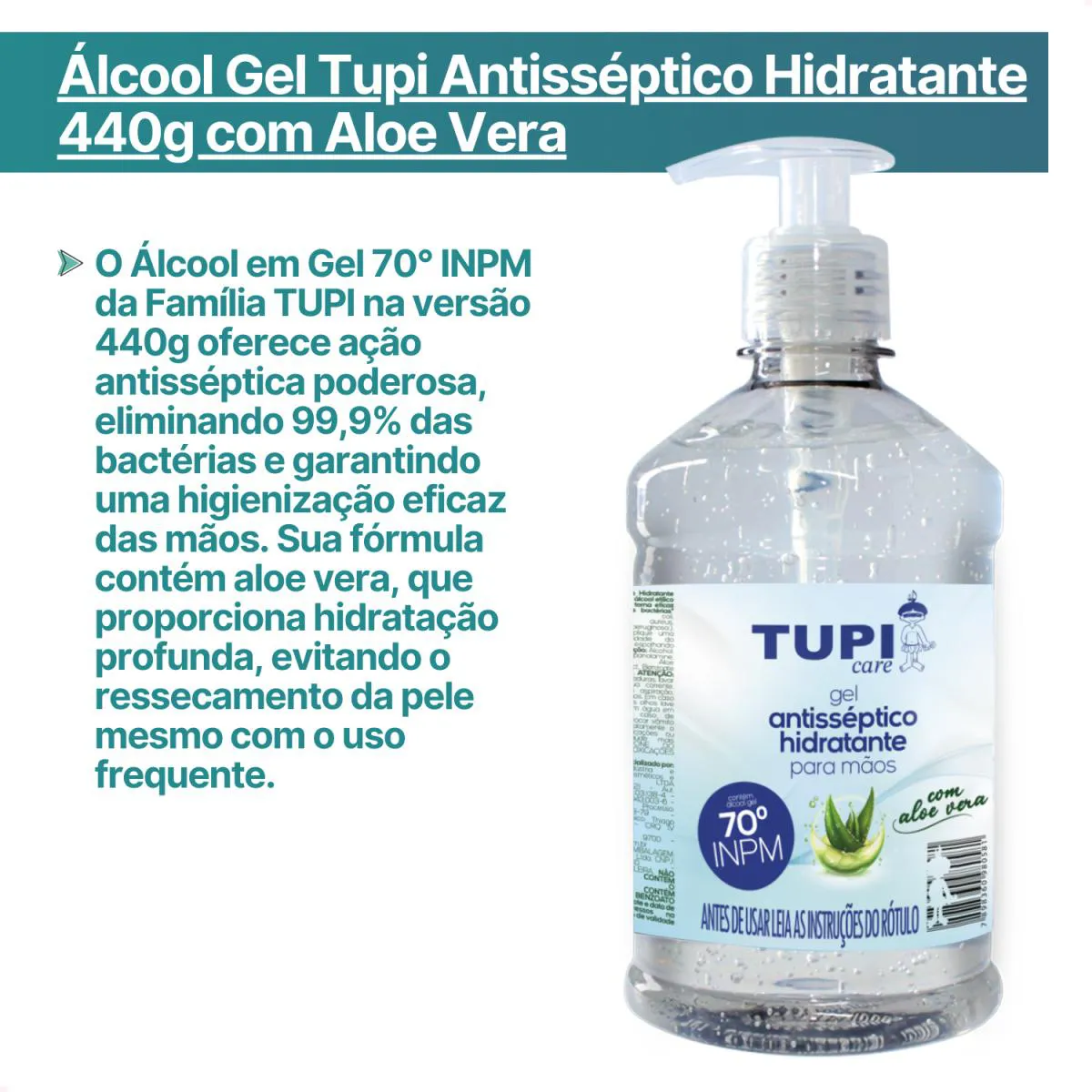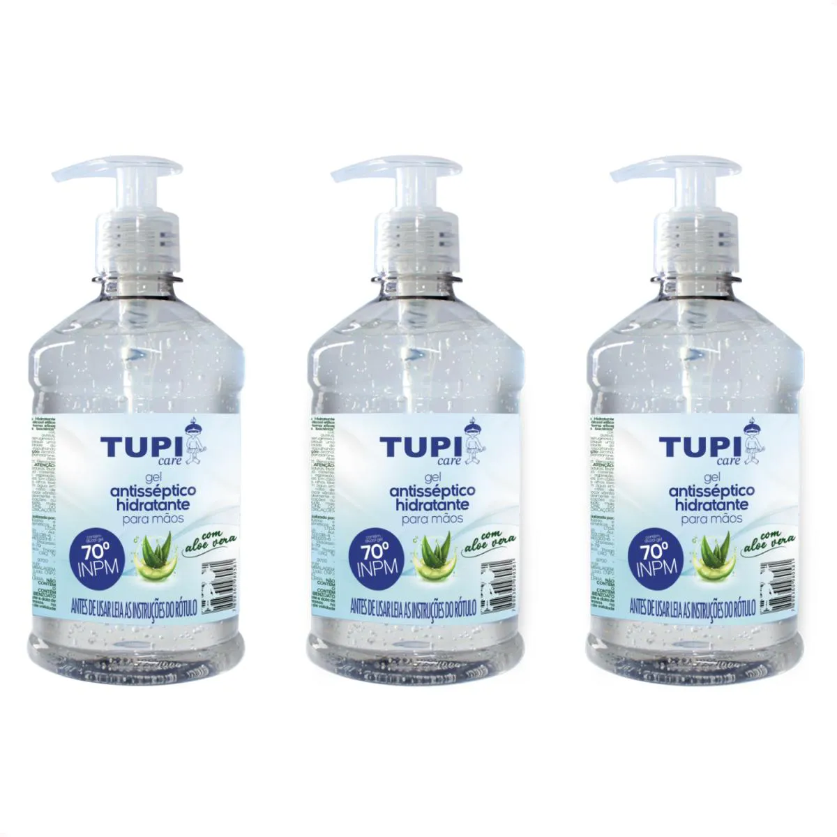Kit 3 Álcool Gel Tupi Antisséptico Hidratante 440G Aloe Vera