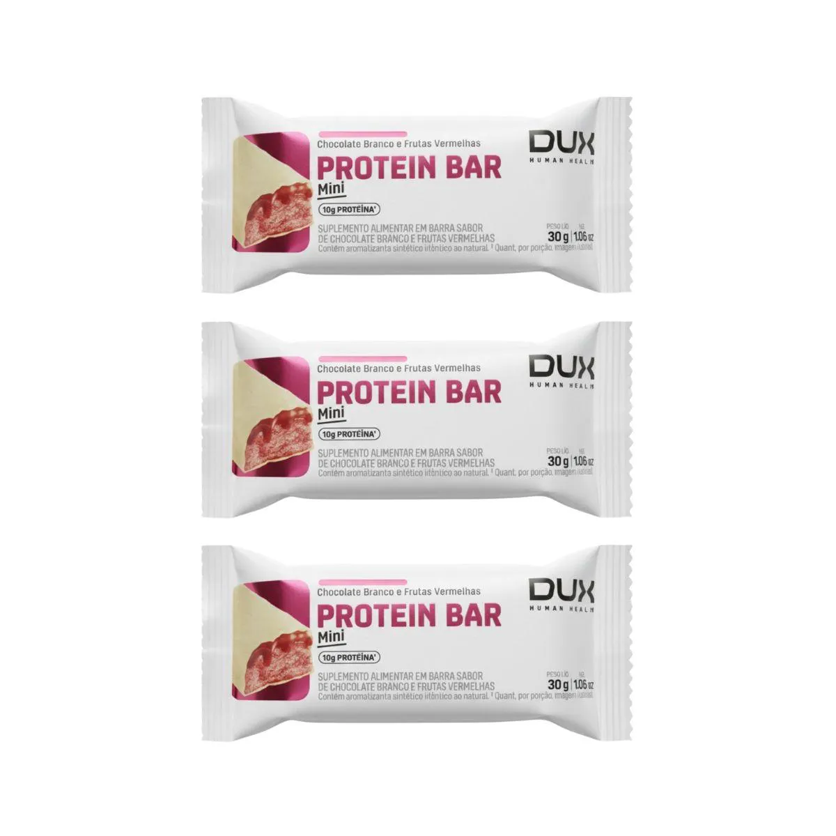 Kit 3 Barra de Proteina 10G Proteina Chocolate Branco e Frutas Vermelhas 30G Dux