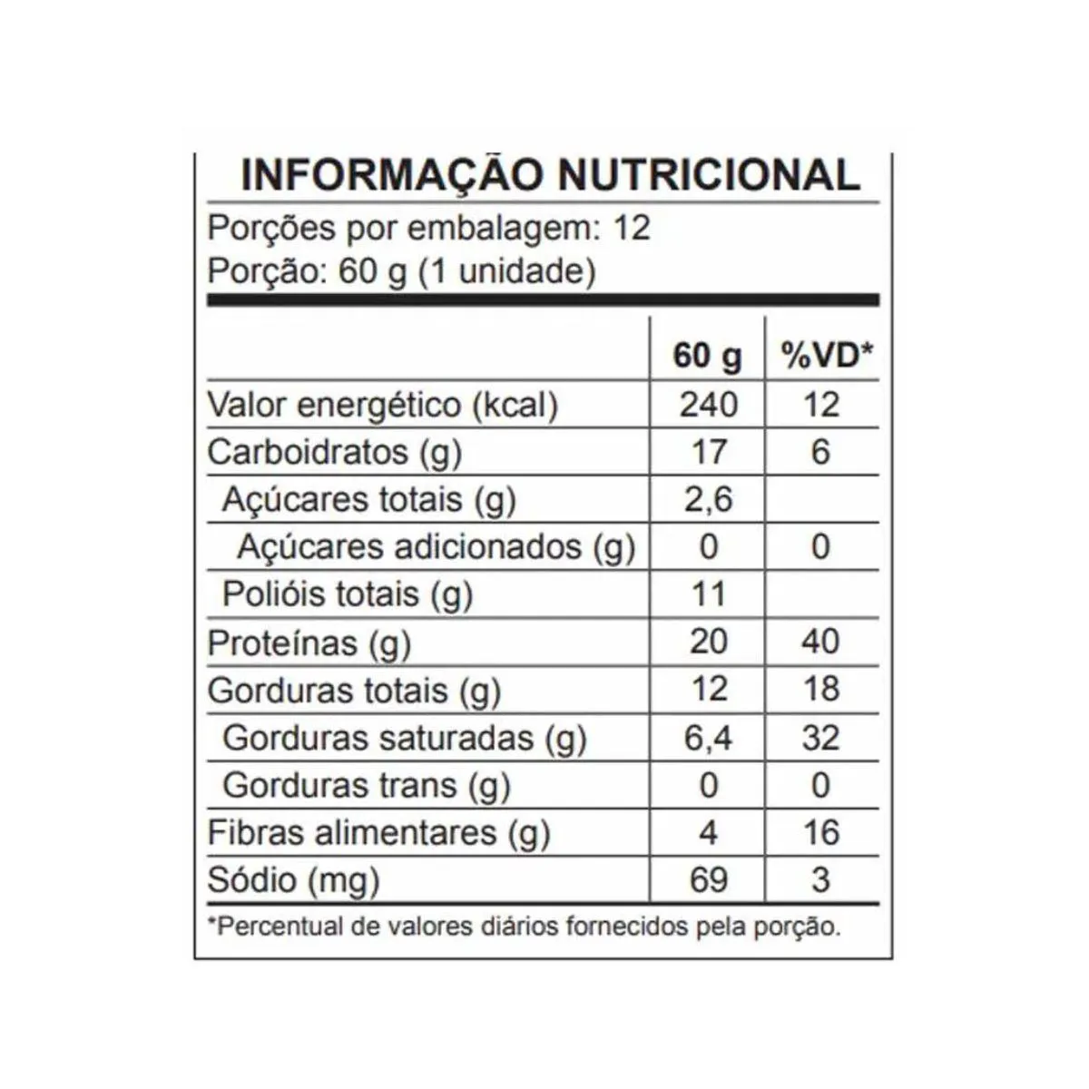 produto. Cada barra fornece 20g de proteína, é zero adição de açúcar e rica em