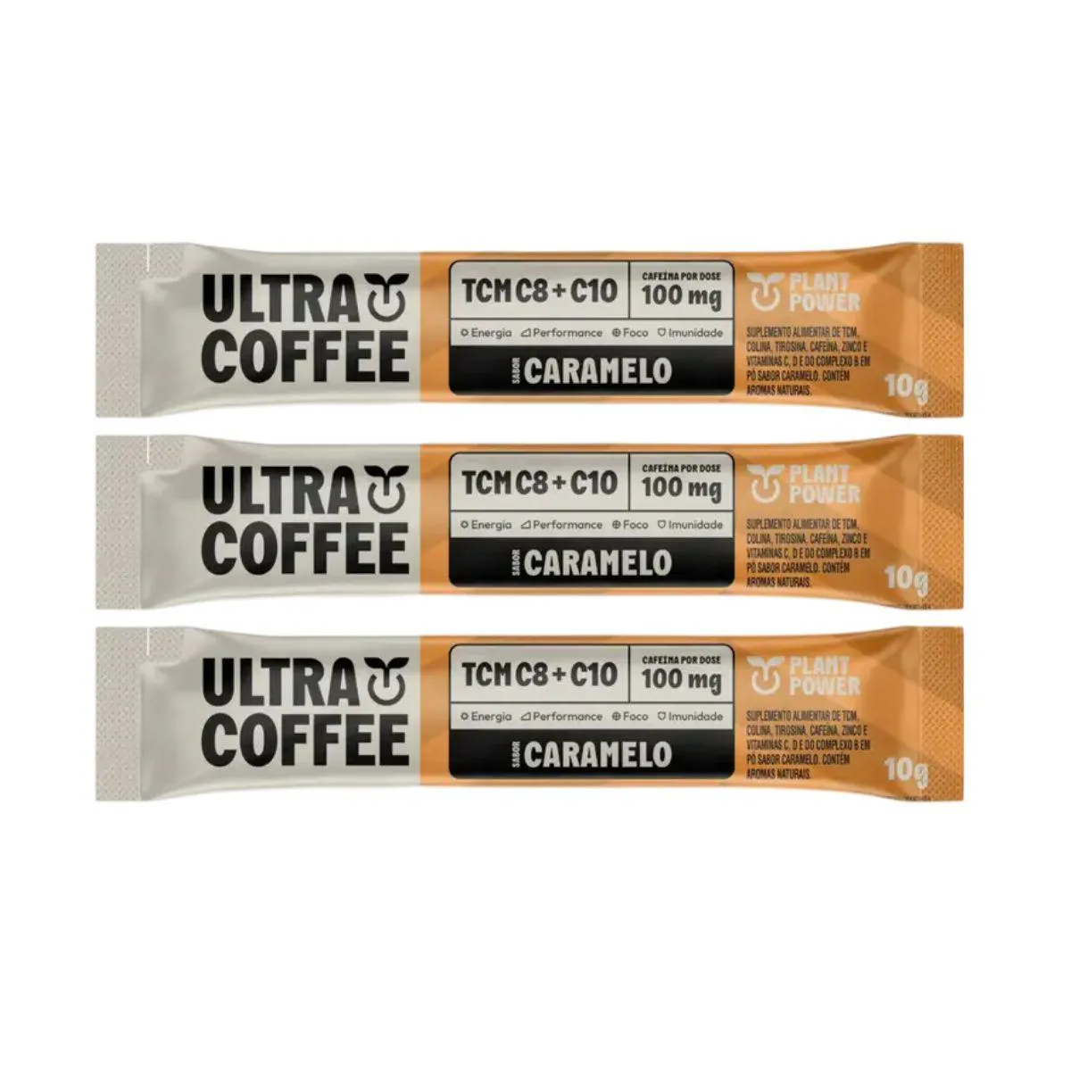 Kit 3 Café Plant-Based Ultracoffee Caramelo 10G Plant Power Suplemento Funcional de Alta Performance