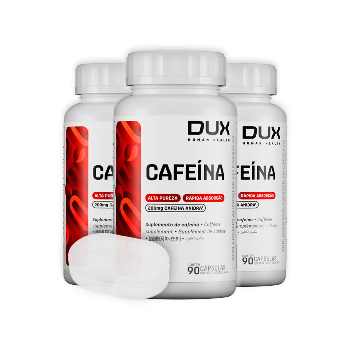 Kit 3 Cafeína Dux Sem Sabor 90 Cápsulas + Porta Cápsulas