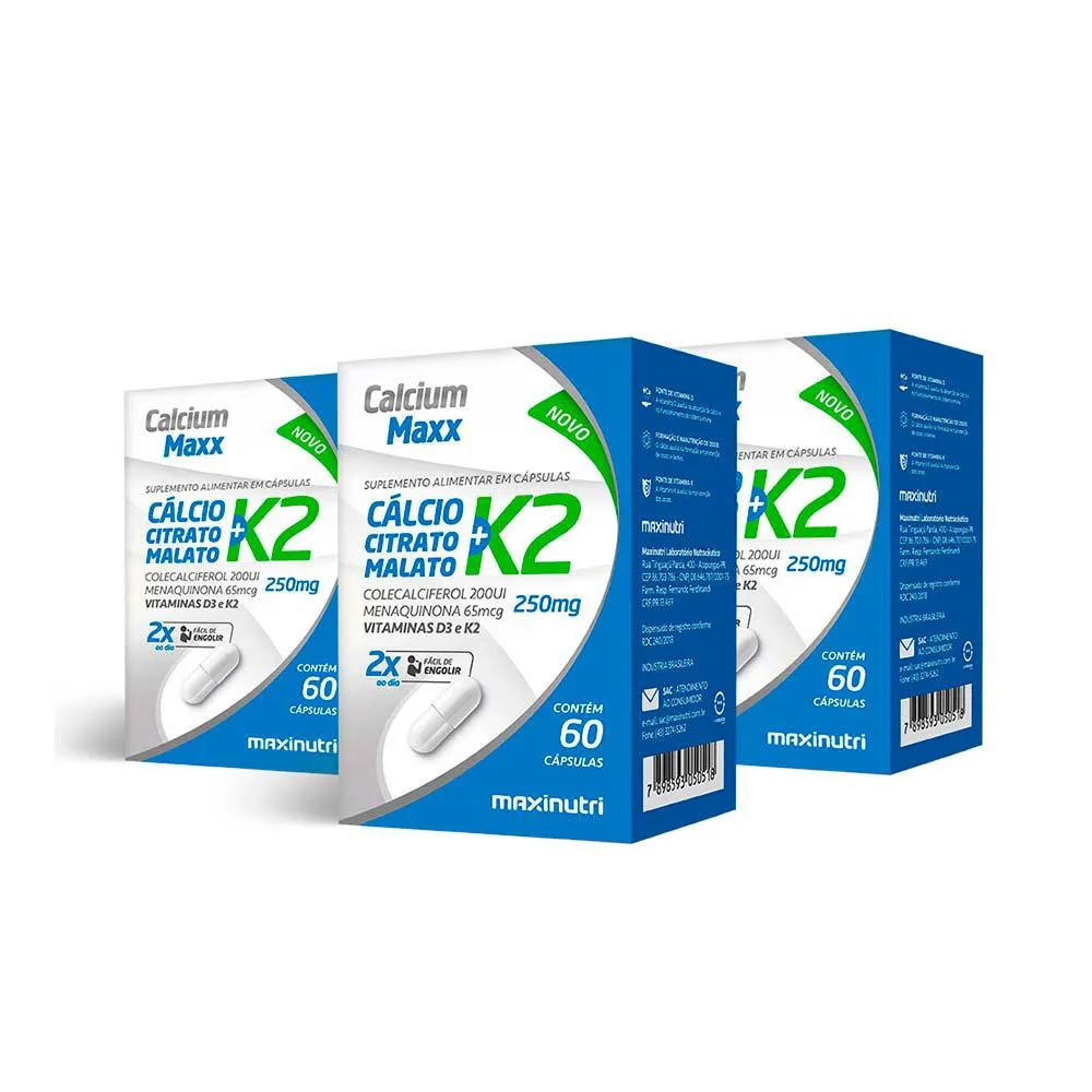 KIT 3 CALCIUM MAXX CáLCIO CITRATO MALATO K2 SAúDE DOS OSSOS 60 CáPS MAXINUTRI