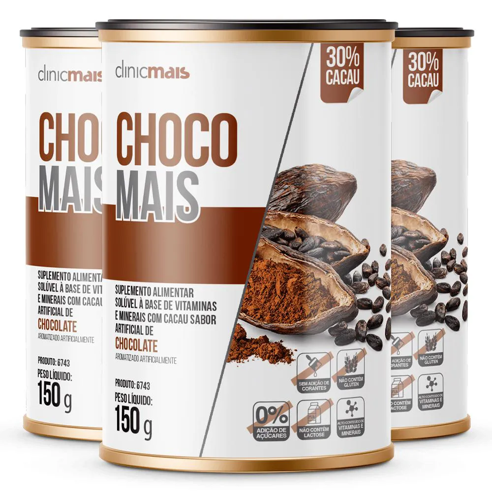 Kit 3 Choco Mais Clinic Mais sabor chocolate 150g