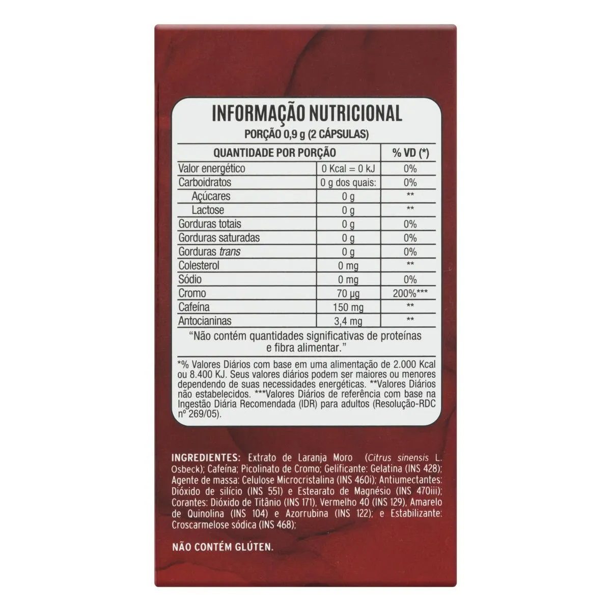 - Auxilia no controle de peso através do extrato de Laranja Moro.
