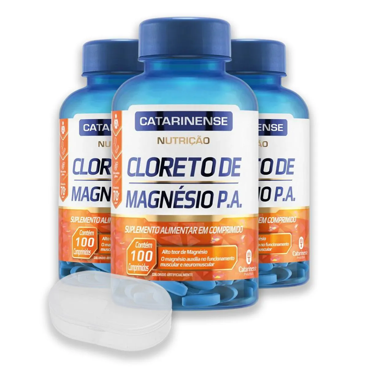 Kit 3 Cloreto de Magnésio Catarinense 100 Comprimidos + Porta Cápsulas
