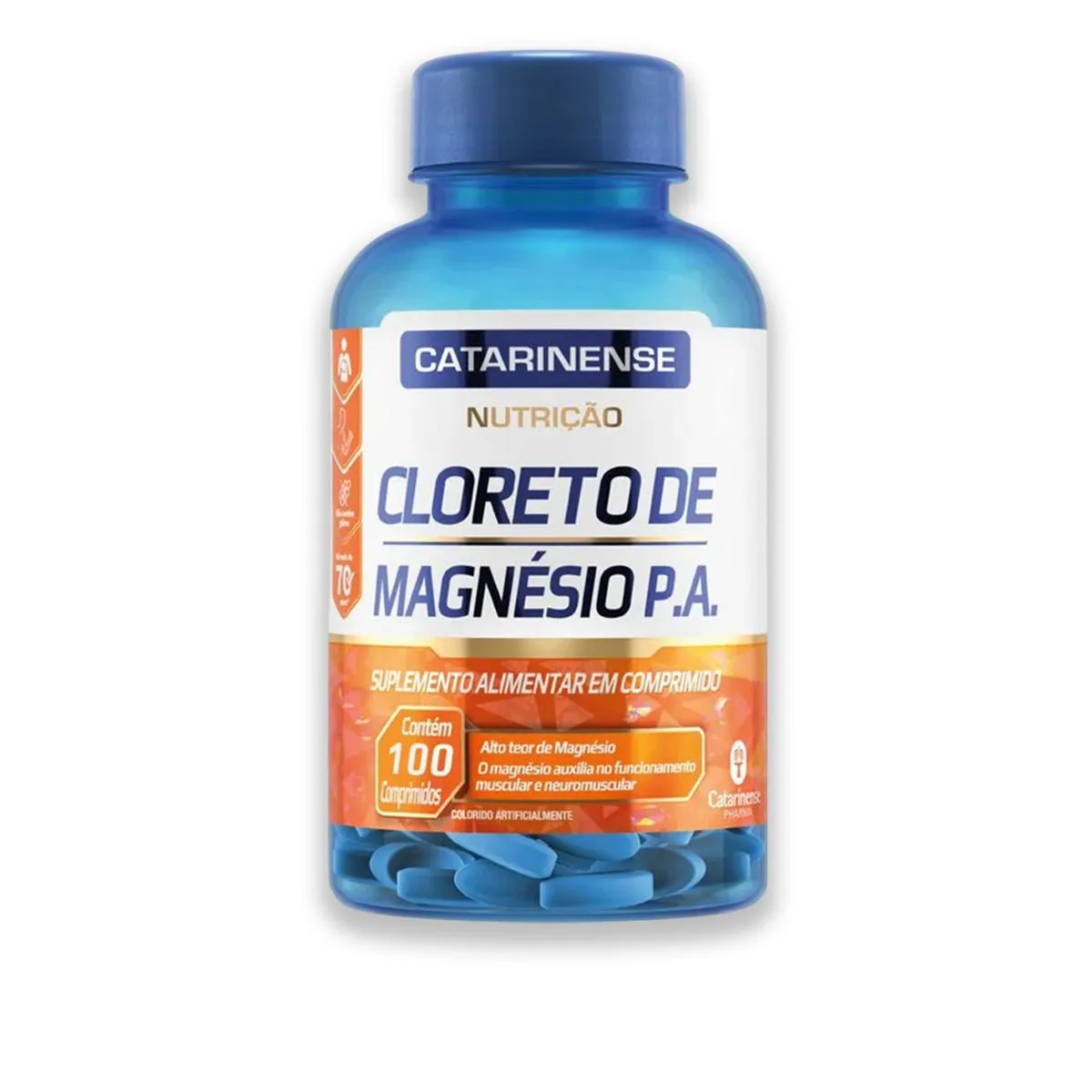 Kit 3 Cloreto de Magnésio P.A. Catarinense - 100 comprimidos Recomendação de uso: 1 a 3 comprimidos ao dia Não contém glúten. Zero açúcares. Zero lactose. Ingredientes: Cloreto de Magnésio, Água Purificada, Amido de Milho; Antiumectantes: Carbonato de Cálcio (INS 170i), Dióxido de Silício (INS 551) e Estearato de Magnésio (INS 470iii), Estabilizantes: Hidroxipropilmetilcelulose (INS 464) e Polivinilpirrolidona (INS 1201), Agente carreador Polietileno glicol (INS 1521) e Corante: Dióxido de Titânio (INvS 171)