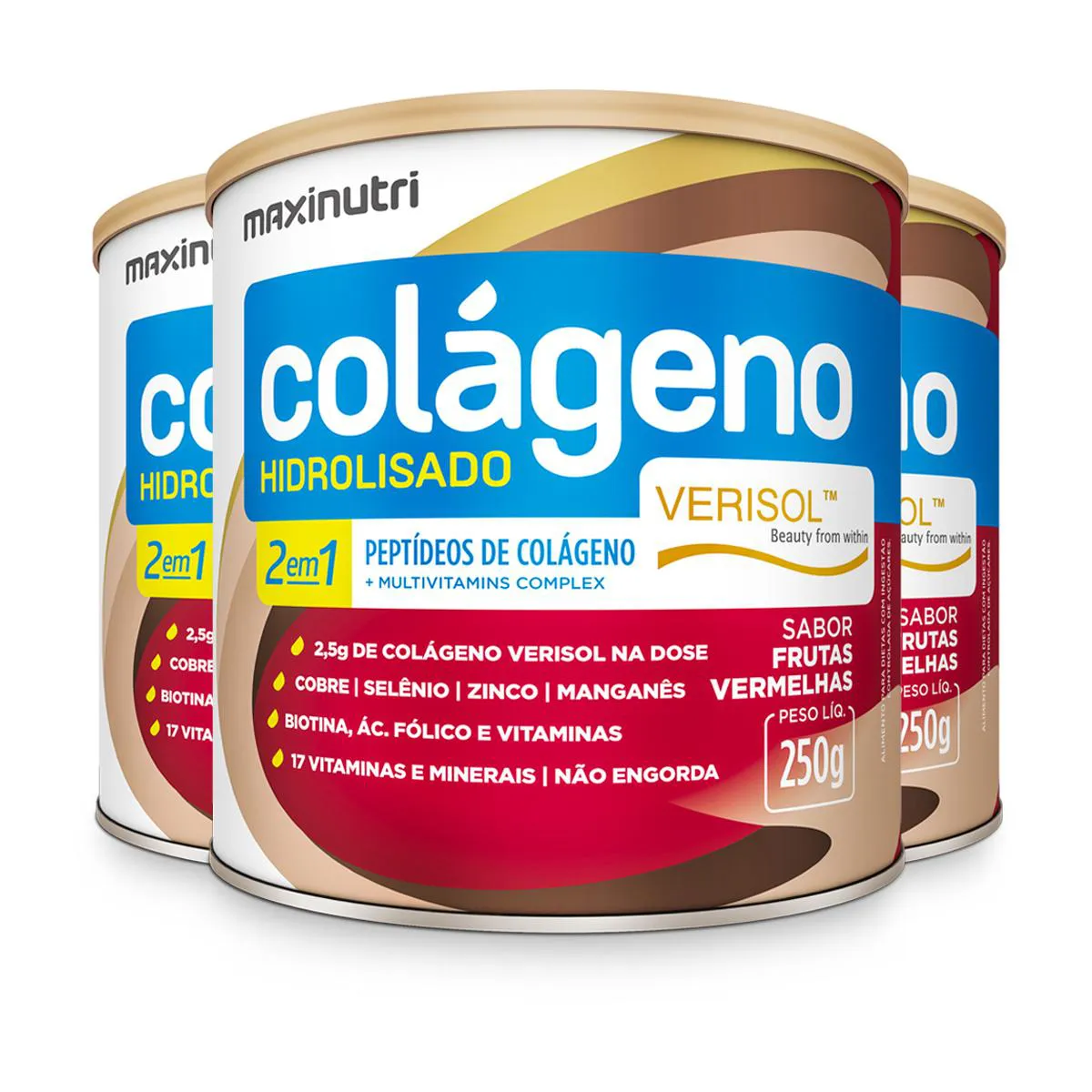 Kit 3 Colágeno Verisol Maxinutri 250G Frutas Vermelhas