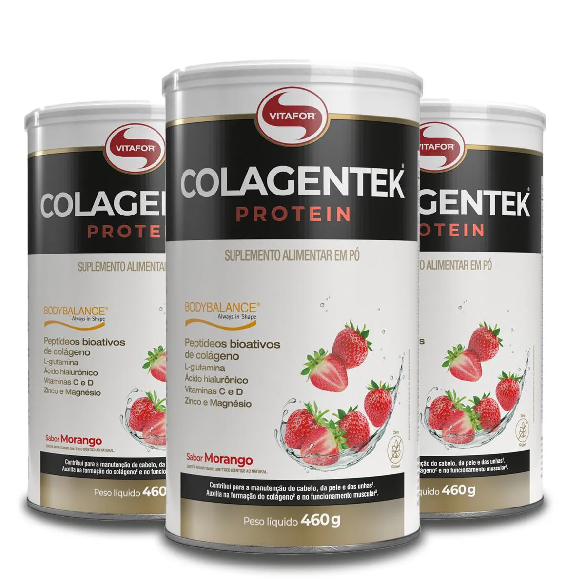 Kit 3 Colagentek Protein Vitafor Morango 460G