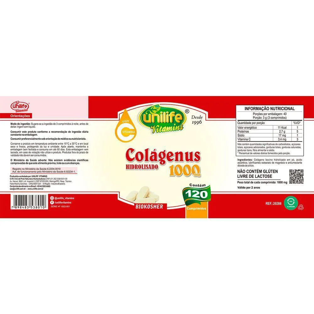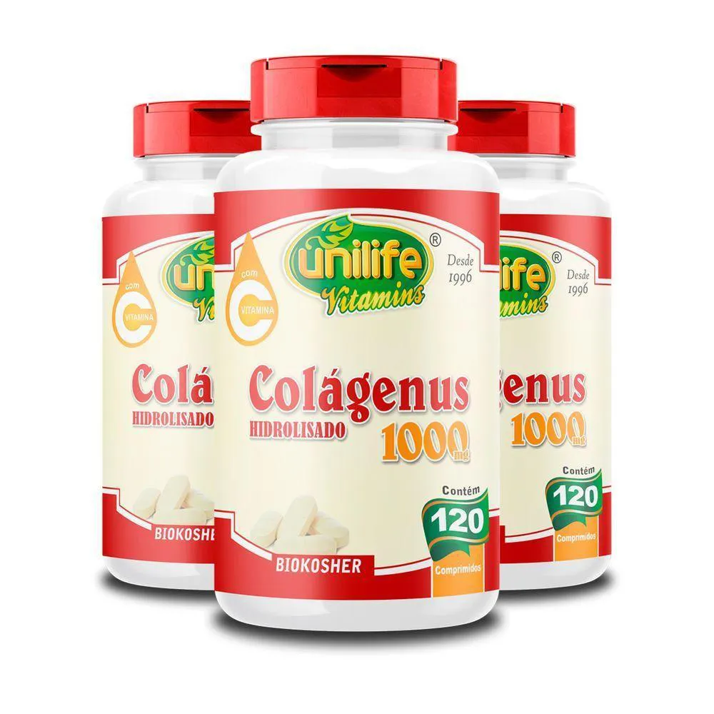 Kit com 3 colágeno Hidrolisado Unilife - 1000mg, 120 Comprimidos cada