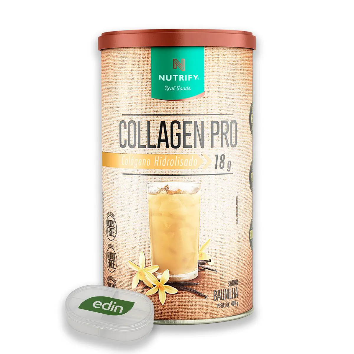 Kit 3 Collagen colágeno Hidrolisado Nutrify Baunilha 450g + Porta Cápsulas Modo de consumo: