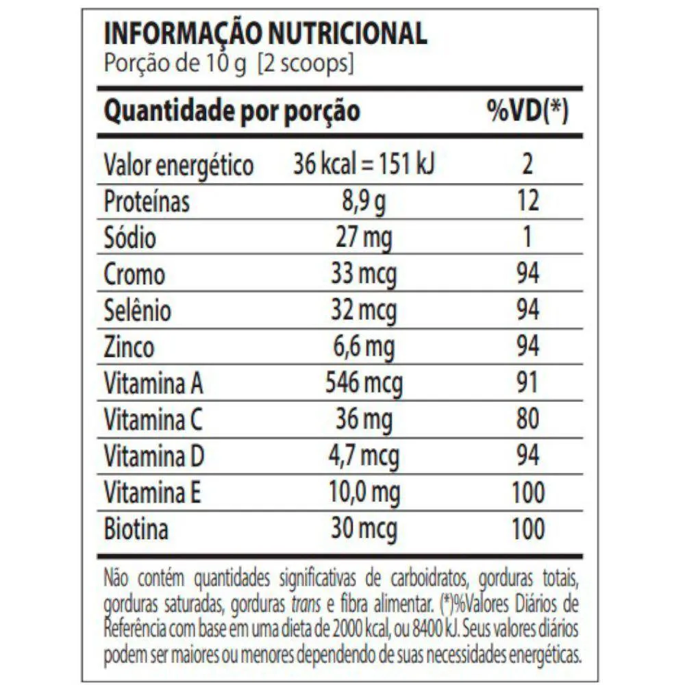 - Com vitaminas e minerais antioxidantes.