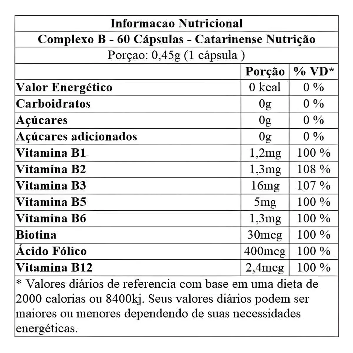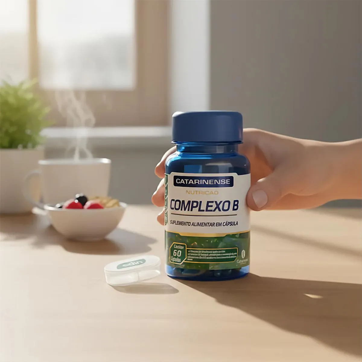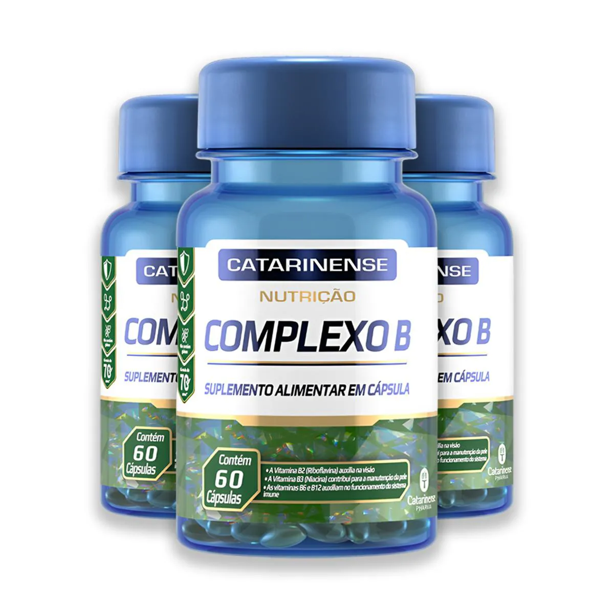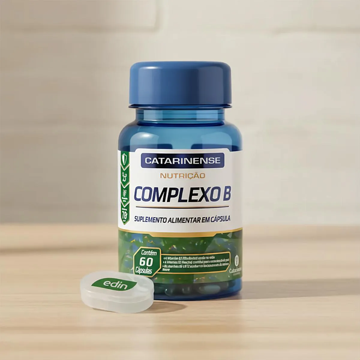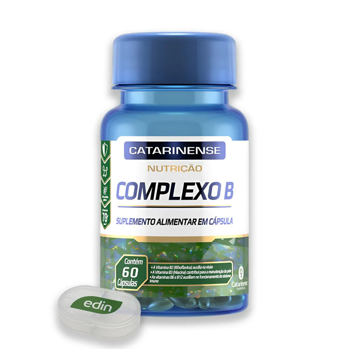 O Kit 3 Complexo B Catarinense 60 Cápsulas é um suplemento vitamínico composto por 8 vitaminas do complexo B, apresentado em cápsulas e acompanhado de um porta cápsulas. Serve para complementar a ingestão diária de vitaminas B, auxiliando no metabolismo energético, no funcionamento do sistema nervoso e na manutenção da saúde geral, sendo indicado para adultos a partir de 19 anos que desejam suprir suas necessidades nutricionais desse grupo de vitaminas.