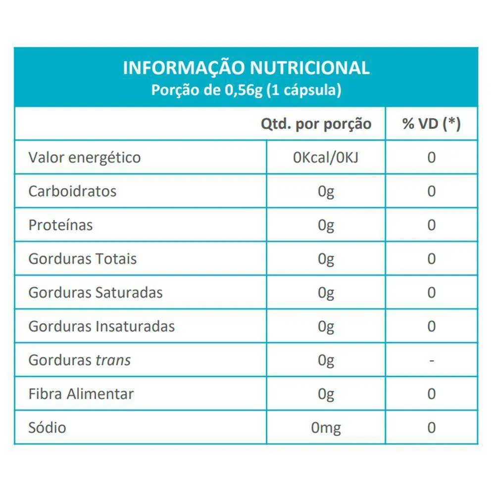 Colágeno Não Hidrolisado Tipo II em Pó, Antiumectantes: Dióxido de Silício (INS 551), Celulose Microcristalina (INS 465), Gelificante: Gelatina, Corantes: Dióxido de Titânio (INS 171), Corante Azul Brilhante (INS 133) e Corante Vermelho (INS 127).