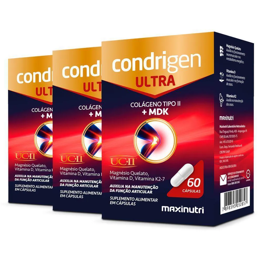 Kit 3 Condrigen Ultra Colágeno Tipo 2 + Mdk Maxinutri 60 Cápsulas
