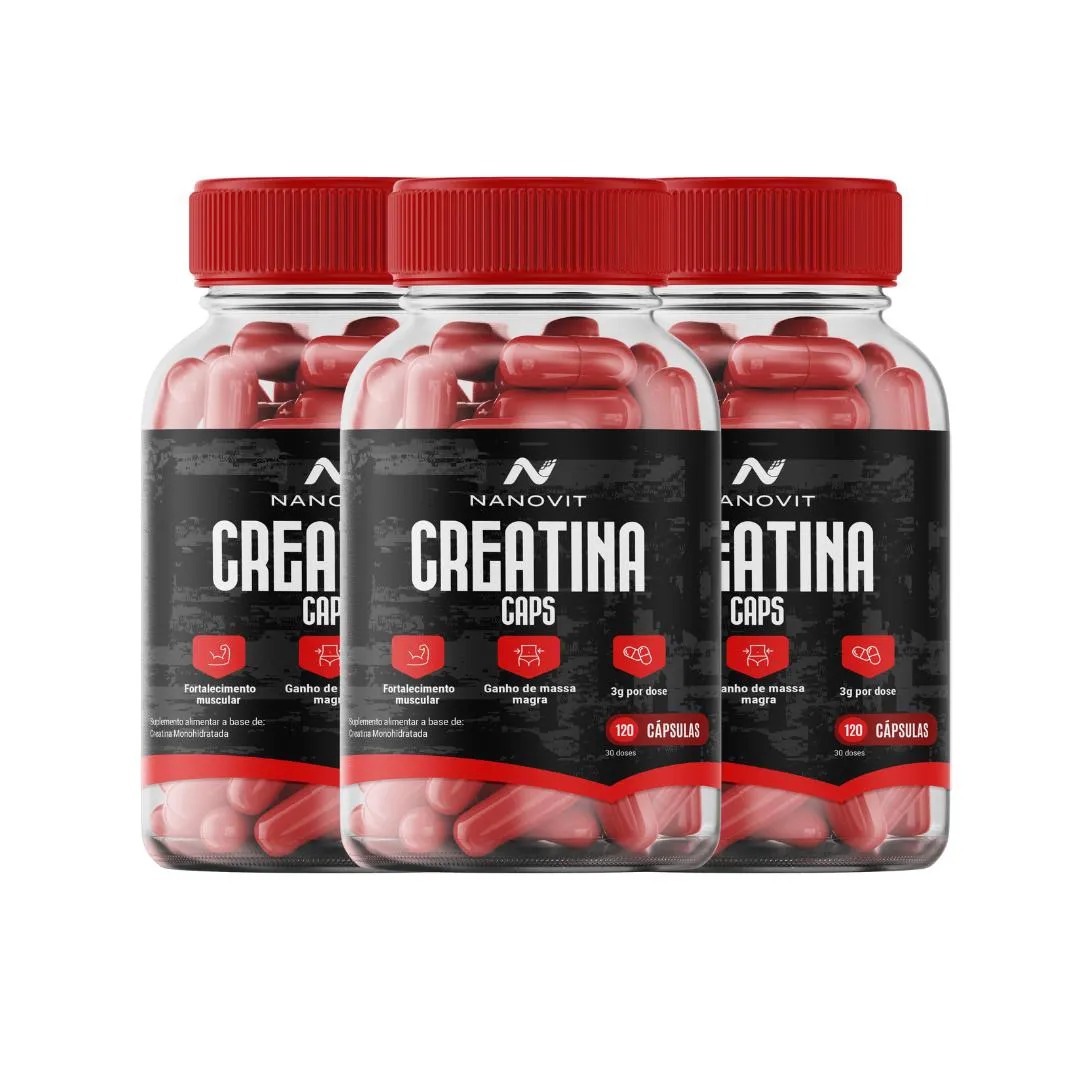 Kit 3 Creatina Monohidratada 100% Pura 120 Cápsulas - Nanovit