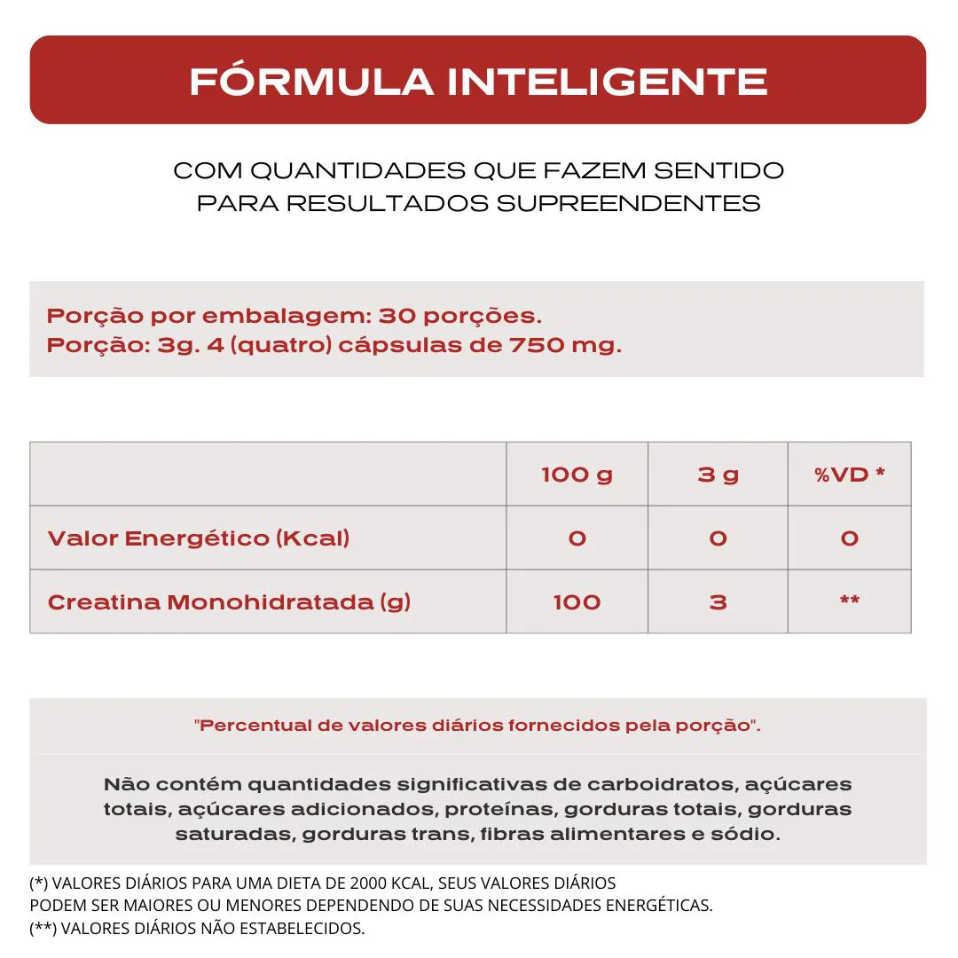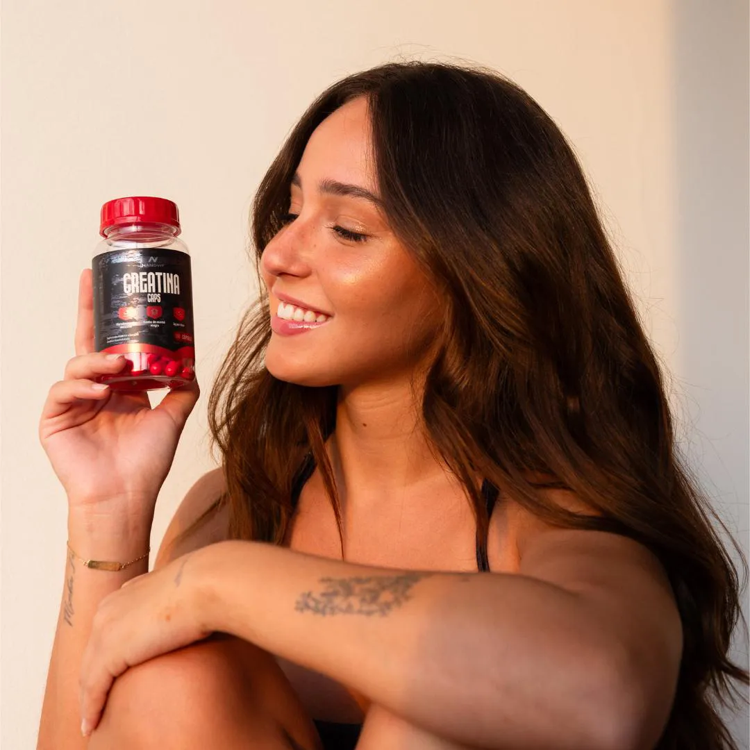 - Creatina 100% pura em cápsulas práticas.