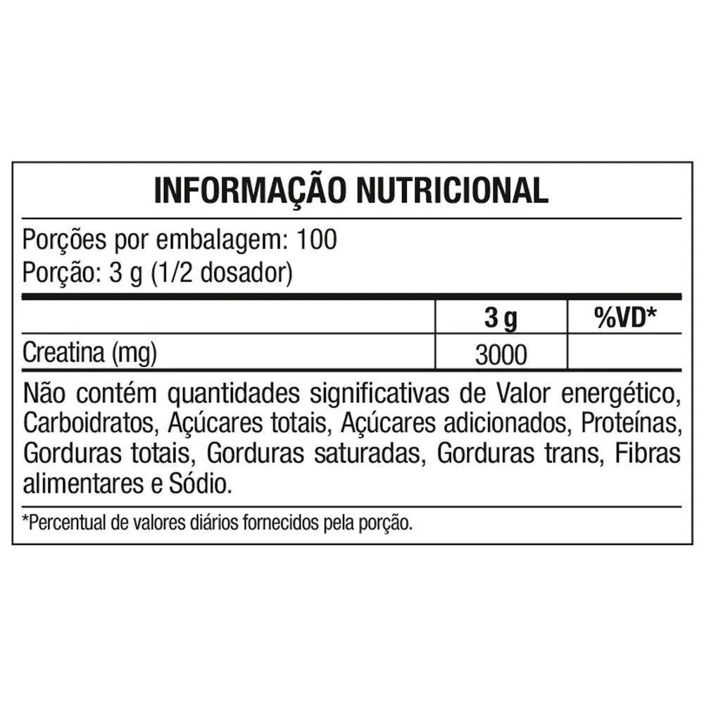 Modo de preparo: Adicione uma porção de 3 g (1/2 dosador) de Creatina em 200ml de água e misture utilizando uma coqueteleira até homogeneizar. Consuma imediatamente. Consumir uma porção uma vez ao dia.Não contém quantidades significativas de valor energético, carboidratos, proteínas, gorduras totais, gorduras saturadas, gorduras trans, fibra alimentar e sódio.ingredientes: creatina monoidratada.alérgicos: pode conter traços de leite, soja, trigo, aveia, cevada, centeio, ovo e castanha. contém glúten.produto naturalmente sem glúten, porém fabricado em equipamento onde se processa o glúten