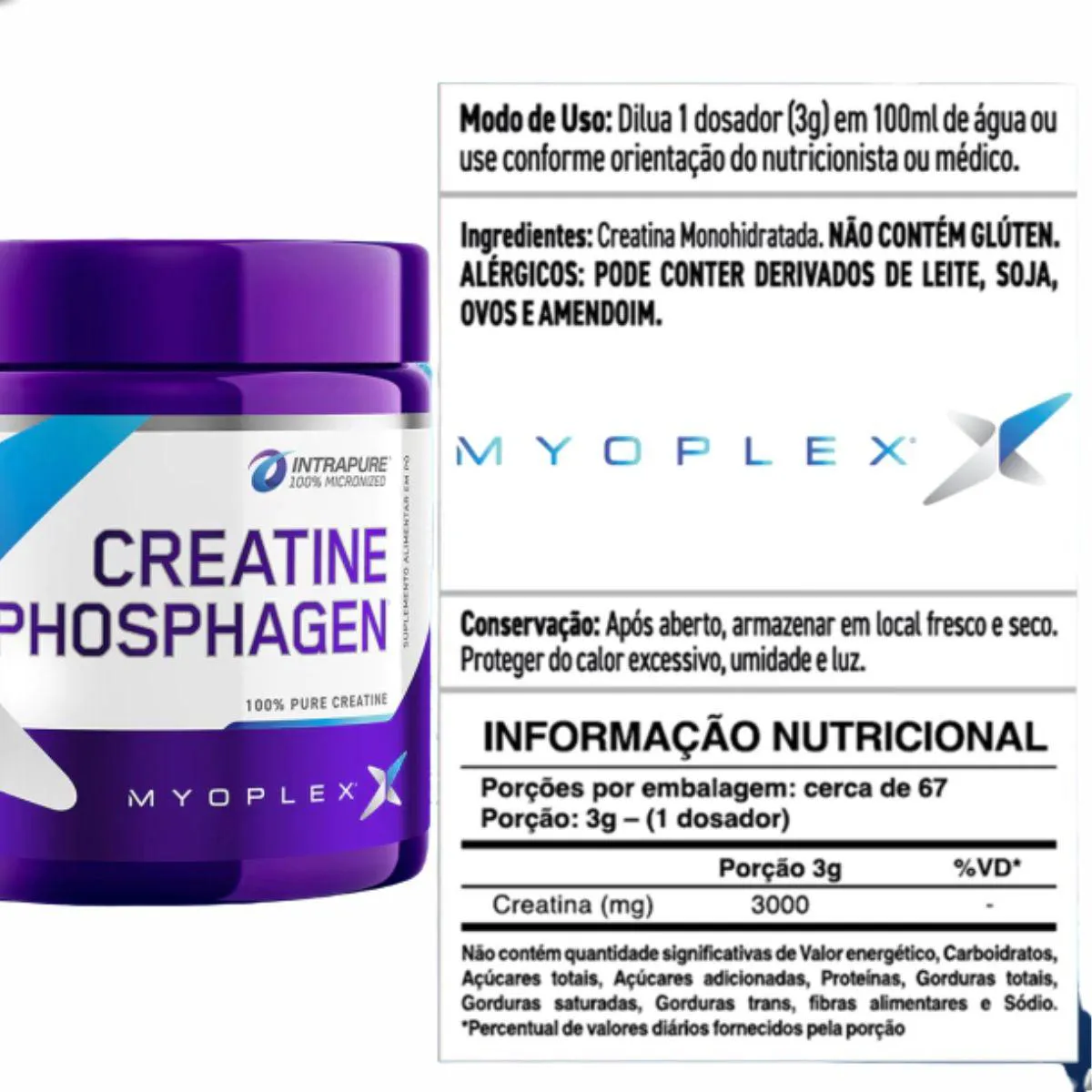 - Creatina 100% pura e micronizada em pó.