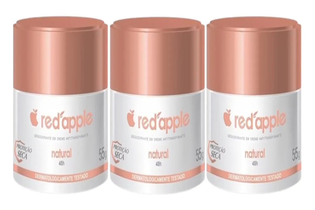 Kit 3 Desodorante Red Apple Natural Em Creme 55g