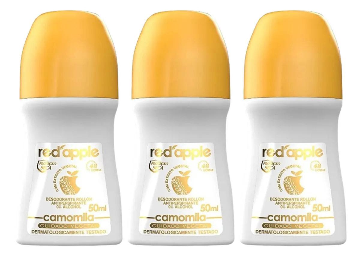 Kit 3 Desodorante Red Apple Roll On Camomila 50Ml