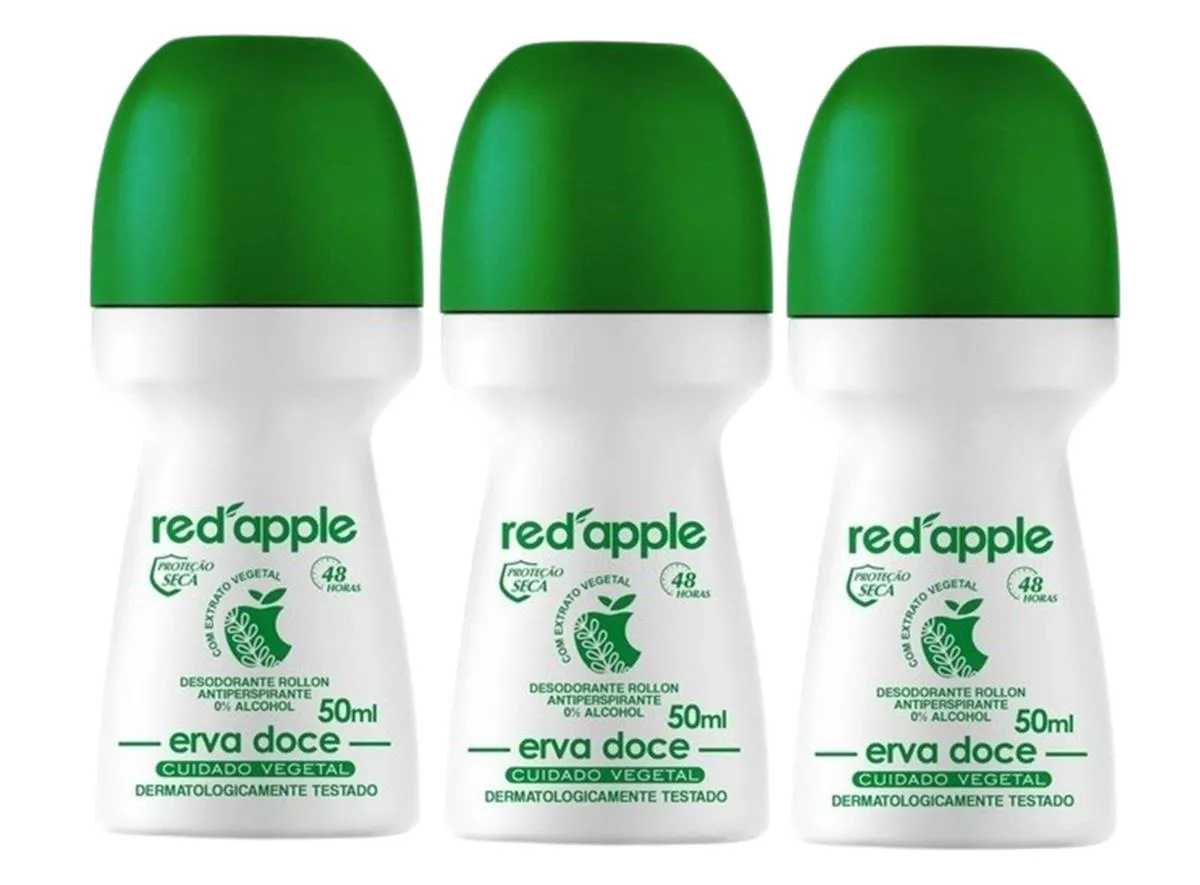Kit 3 Desodorante Red Apple Roll On Erva Doce 50Ml.