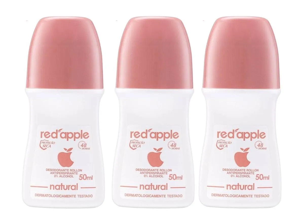 Kit 3 Desodorante Red Apple Roll On Natural 50ml