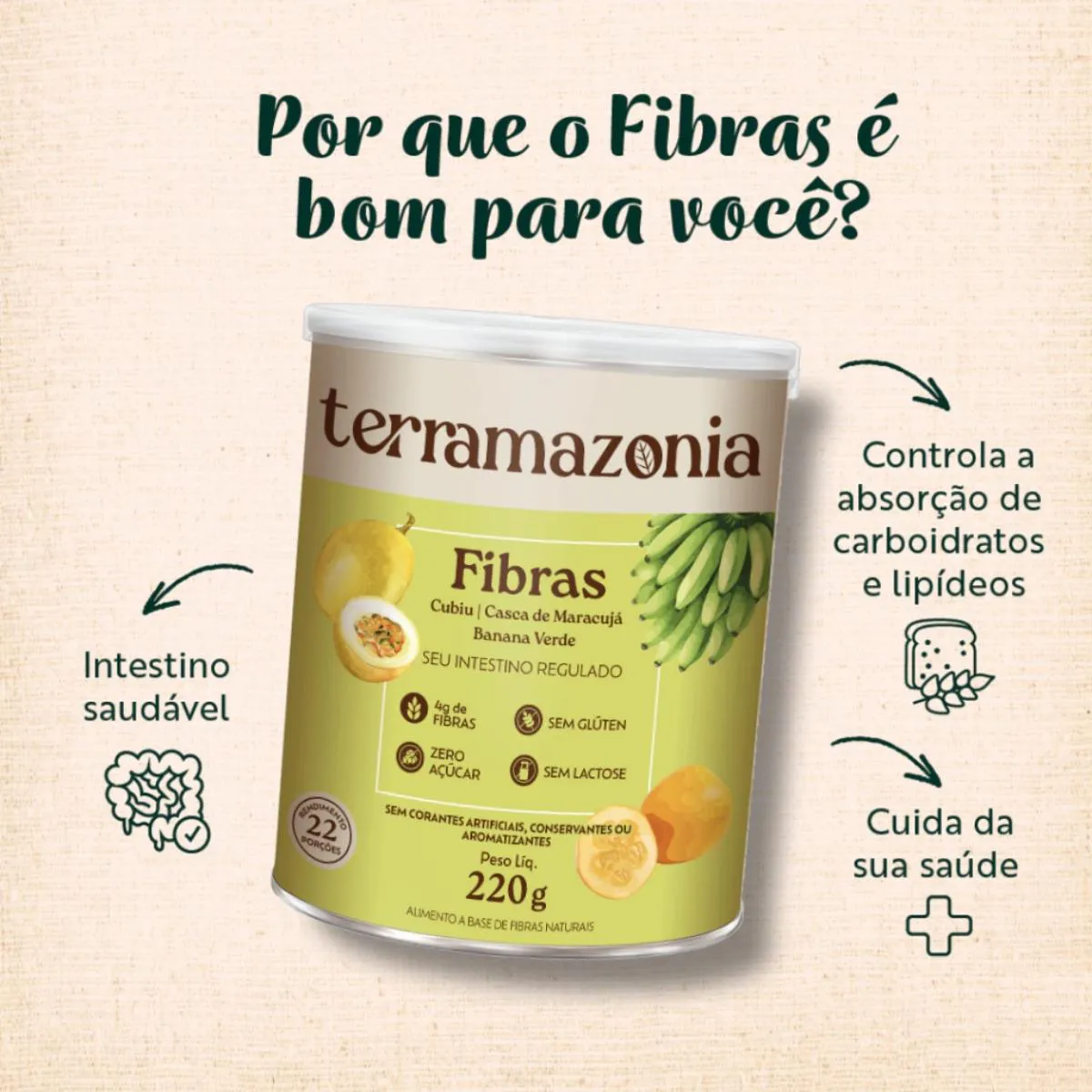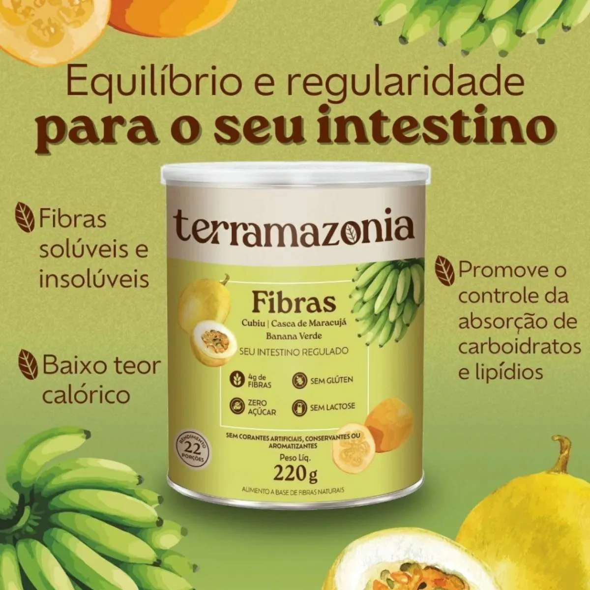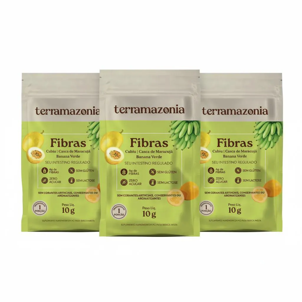 KIT 3 - SEU INTESTINO REGULADO Fonte de fibras - 4g por dose Baixo teor calórico Saúde dos intestinos - regularidade e bom funcionamento DESCRIÇÃO O Fibras é um suplemento natural de fibras solúveis e insolúveis que auxiliam no funcionamento do intestino e promove o controle da absorção de carboidratos e lipídios. A sua ingestão regular promove um ambiente favorável à microbiota intestinal. Pode ser adicionado a qualquer tipo de alimento ou bebida. Sem adição de açúcares ou de ingredientes sintéticos na formulação. ATIVOS NATURAIS ✓ Farinha de casca do maracujá: A farinha da casca do maracujá é rica em fibras, vitaminas e minerais, podendo ser considerada uma ótima aliada do processo de emagrecimento. Além disso, devido às suas propriedades, ajuda a regular os níveis de colesterol e glicose, além de garantir a sensação de saciedade.Esta farinha ajuda a emagrecer porque contém pectina, o que ajuda a diminuir os picos de glicemia na corrente sanguínea, que são responsáveis por gerar fome e vontade de comer doces. ✓ Farinha de banana verde: Esta farinha é produzida da fruta quando ela ainda não amadureceu. O alimento possui fibras, proteínas, minerais e vitaminas como zinco, magnésio, manganês e potássio, além de ter baixo índice glicêmico. E também contém baixos teores de gorduras e sódio. Quando a fruta ainda não amadureceu, seu teor de amido resistente é ainda maior do que na fruta madura. E há diversas pesquisas científicas que comprovam seus benefícios para a saúde. ✓ Farinha de cubiu: É rica em fibras, proteínas, vitaminas e sais minerais. O cubiu é rico também em ferro, fósforo, vitamina B5, vitamina c e possui elevada concentração de Niacina (vitamina B3), três vezes maior que a beringela e doze vezes mais que a beterraba. A vitamina B3 é essencial para o funcionamento do sistema nervoso e para o bom desempenho das funções cerebrais e, além de promover benefícios para a pele, auxilia na redução da taxa de colesterol, dos triglicérides e dos níveis de glicemia no sangue. ✓ Polidextrose: A polidextrose é uma fibra alimentar prebiótica natural solúvel em água. Conhecida como superfibra, ela é capaz de reduzir a absorção de gorduras e calorias pelo organismo humano e melhorar o funcionamento do intestino. SUGESTÕES DE USO Diluir 1 porção (10g) em 200 mL de água ou outras bebidas de sua preferência como leite ou suco de frutas. Mexer com auxílio de uma colher ou misturador de bebidas e consumir imediatamente. Consumir duas vezes ao dia. Pode ser usado no preparo de receitas culinárias ou ser adicionado diretamente sobre o alimento. INGREDIENTES Farinha da casca do maracujá, Farinha de banana verde, Farinha de cubiu, Polidextrose, Goma xantana e Goma guar.