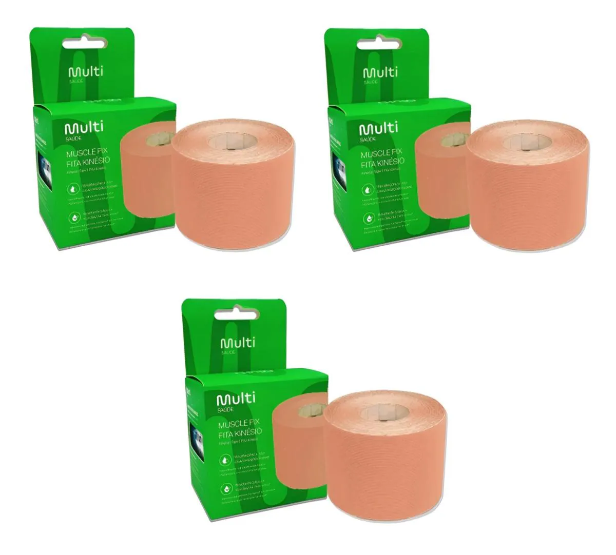 Kit 3 Fita Kinésio Muscle Fix Bandagem Multilaser 5cmx5m