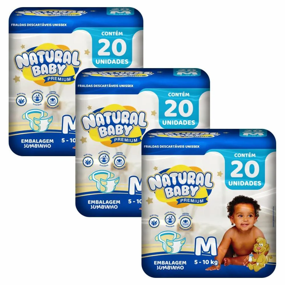 O que é e para que serve o Kit 3 Fraldas Natural Baby Premium Jumbinho M C/ 20 Unidades Cada?