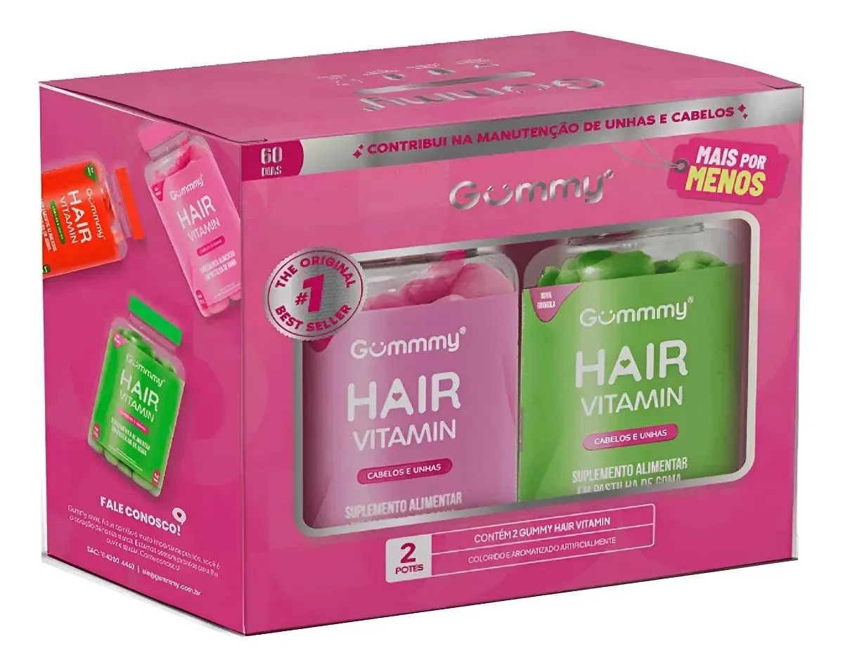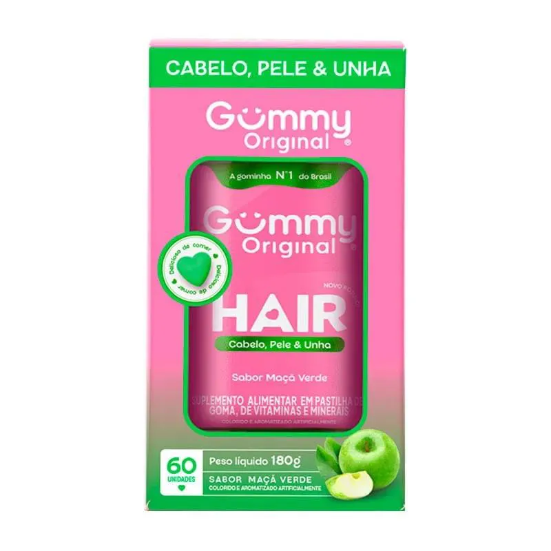 Gummy Hair Vitamin é um suplemento alimentar em gomas com forma de coração.