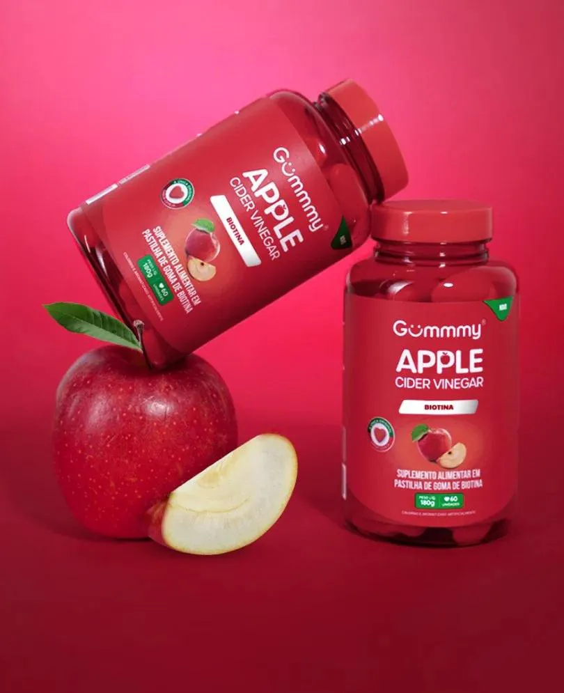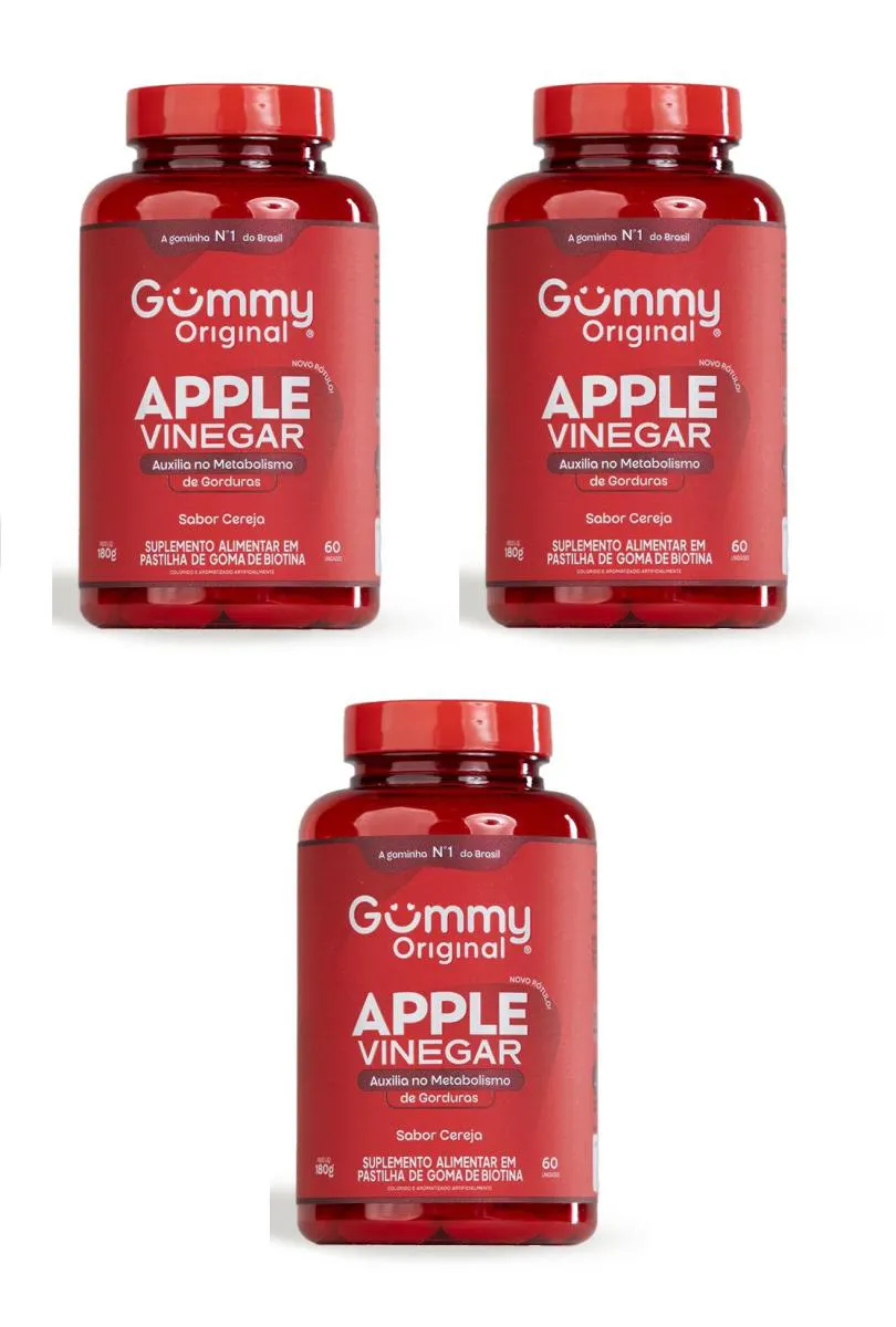 Kit 3 Gummy Hair Vinagre de Maçã Sabor Cereja 60 Gomas