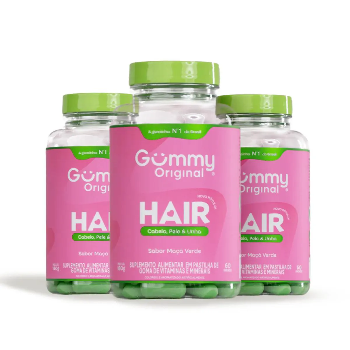 Kit 3 Gummy Hair Vitamin Cabelos Unhas Maçã Verde 60 Gomas