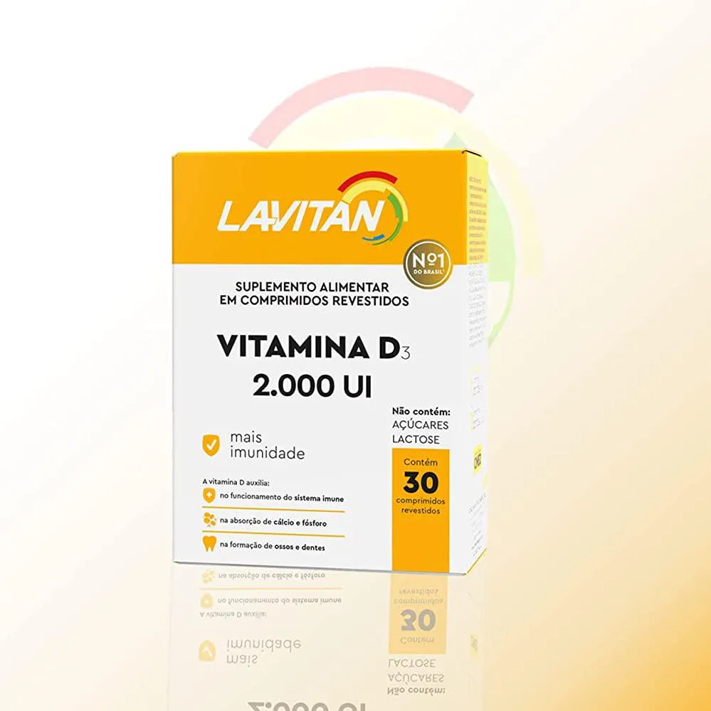 Suplemento Alimentar em comprimidos revestidos composto por vitamina D. Cada comprimido possui 2000 UI, auxiliando na absorção de cálcio e fósforo e no funcionamento do sistema imune. Indicado para adultos e crianças acima de 7 anos.