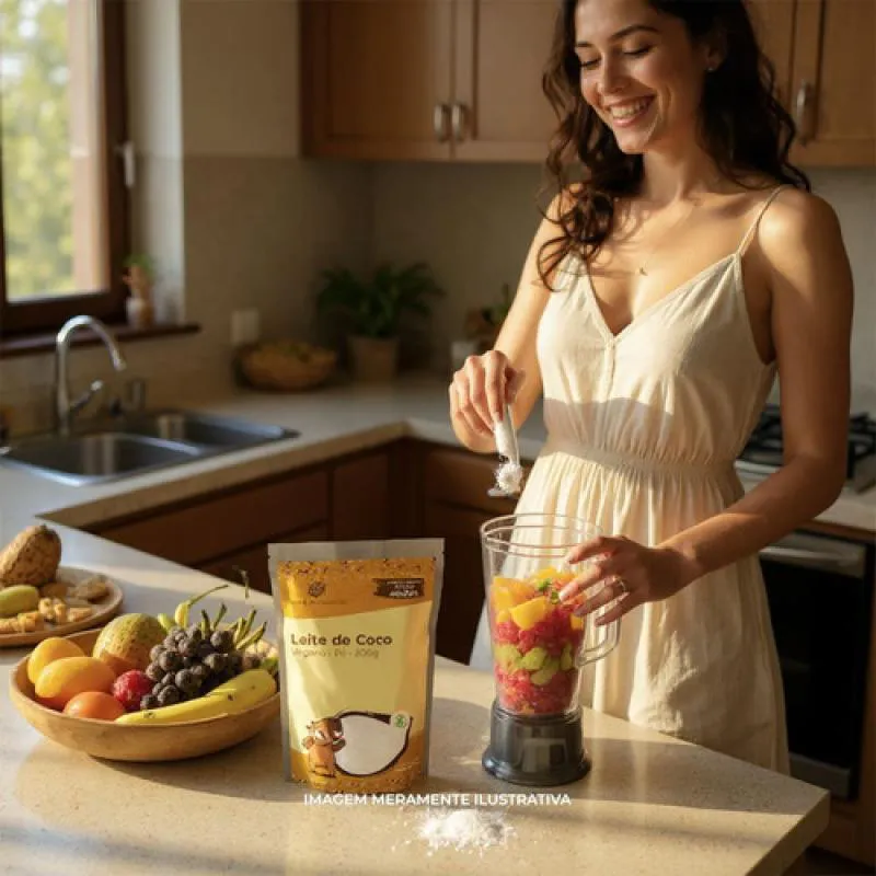 Basta misturar o pó em água ou bebida vegetal na proporção desejada para obtenção de leite de coco cremoso. Seu uso é versátil: pode ser incorporado em cafés,
