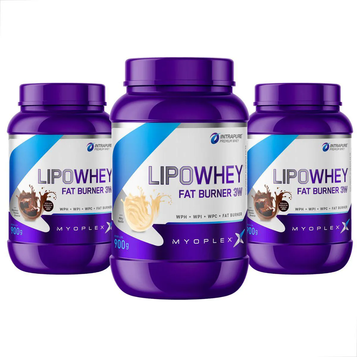 Kit 3 Lipo Whey Fat Burner 3W Premium 900G Myoplex 2 Chocolate E 1 Baunilha