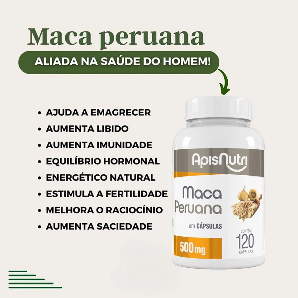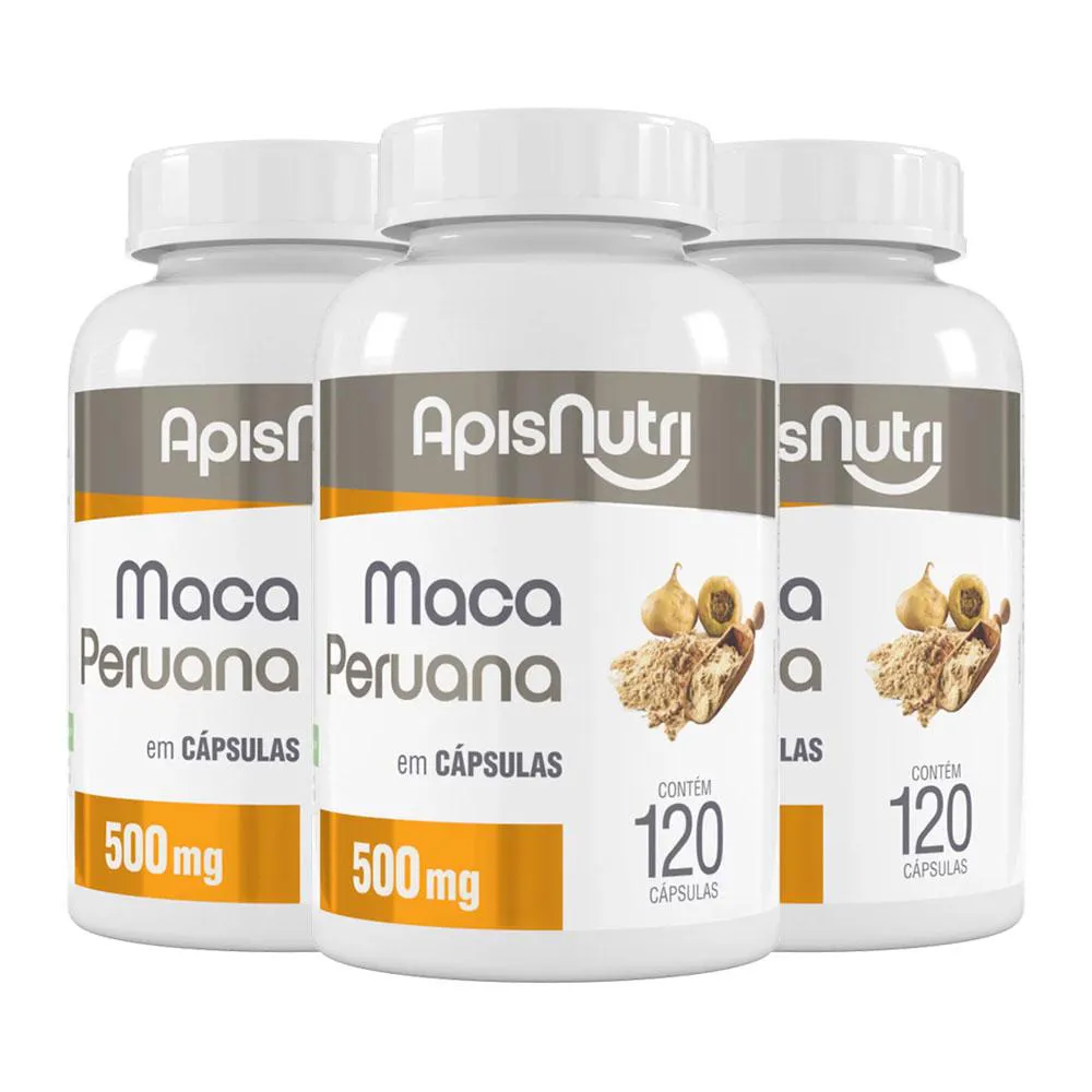 Kit 3 Maca Peruana Pura Original 500mg com 120 Cápsulas Apisnutri