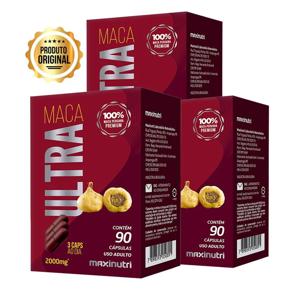 KIT 3 MACA PERUANA ULTRA 100% MACA PURA 90 CáPSULAS MAXINUTRI