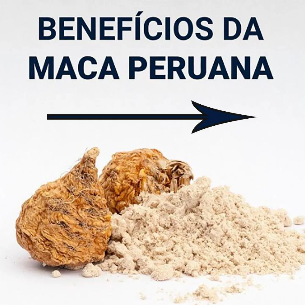 Maca peruana em pó (Lepidium meyenii), excipiente: silicato de magnésio, antiumectante: dióxido de silício, cápsula: gelatina, corantes: amarelo 6, azorrubina, azul brilhante, vermelho 40 e dióxido de titânio.