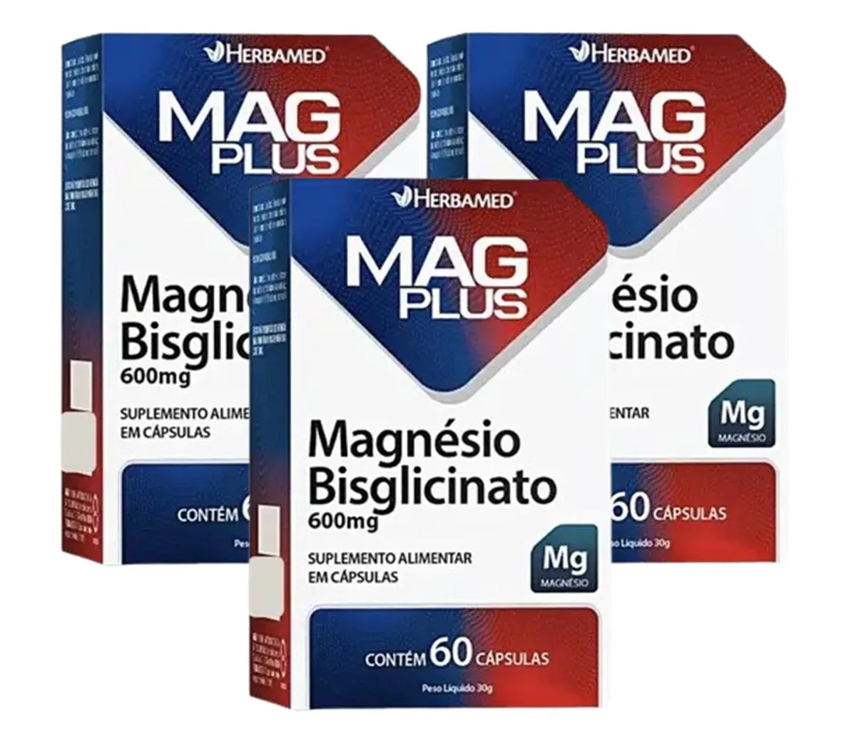 Kit 3 Mag Plus Magnésio Bisglicinato 600mg 60 cápsulas -herbamed