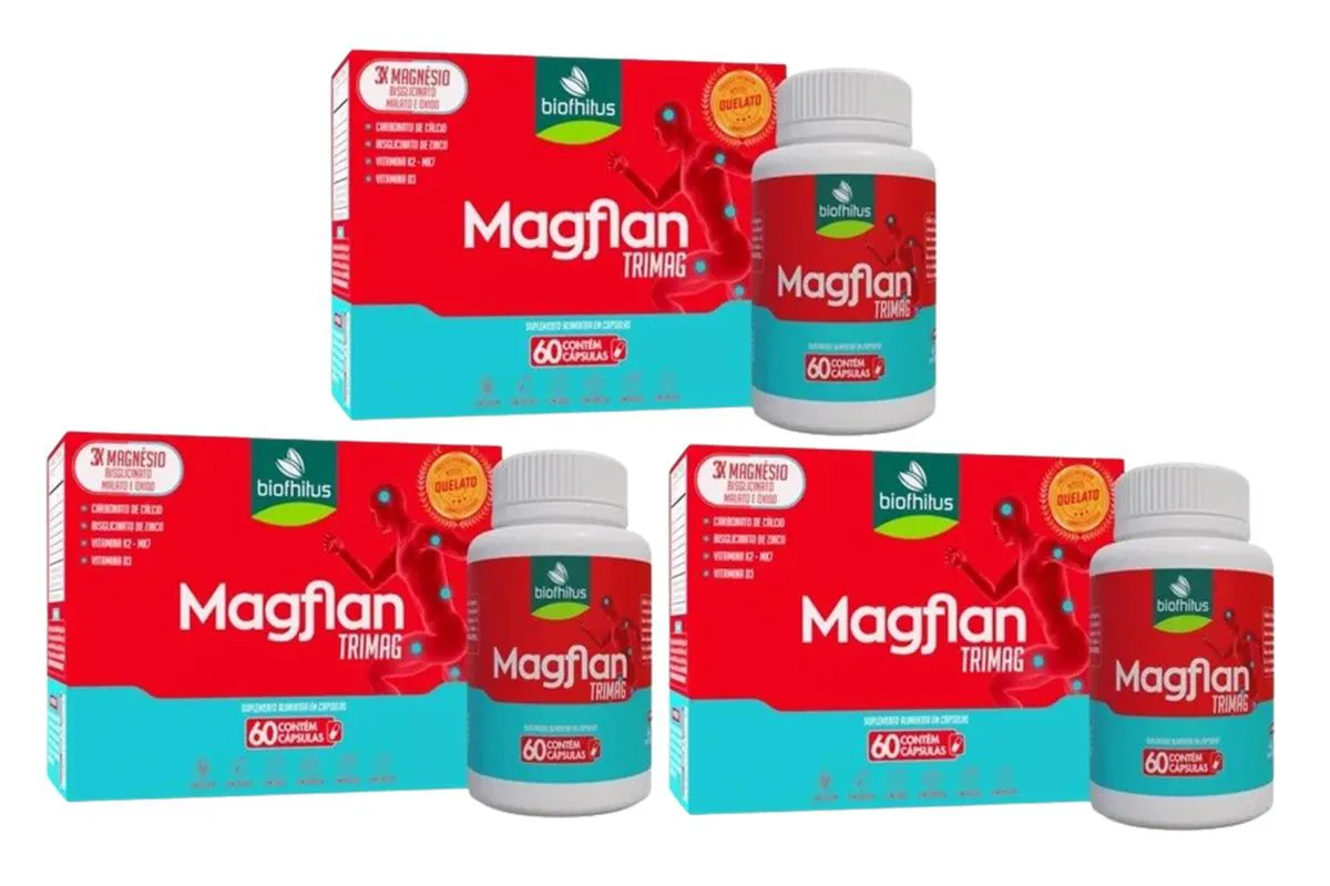 O que é e para que serve o Kit 3 Magflan Trimag Calcio Mdk 60 Cápsulas mineral Quelato?