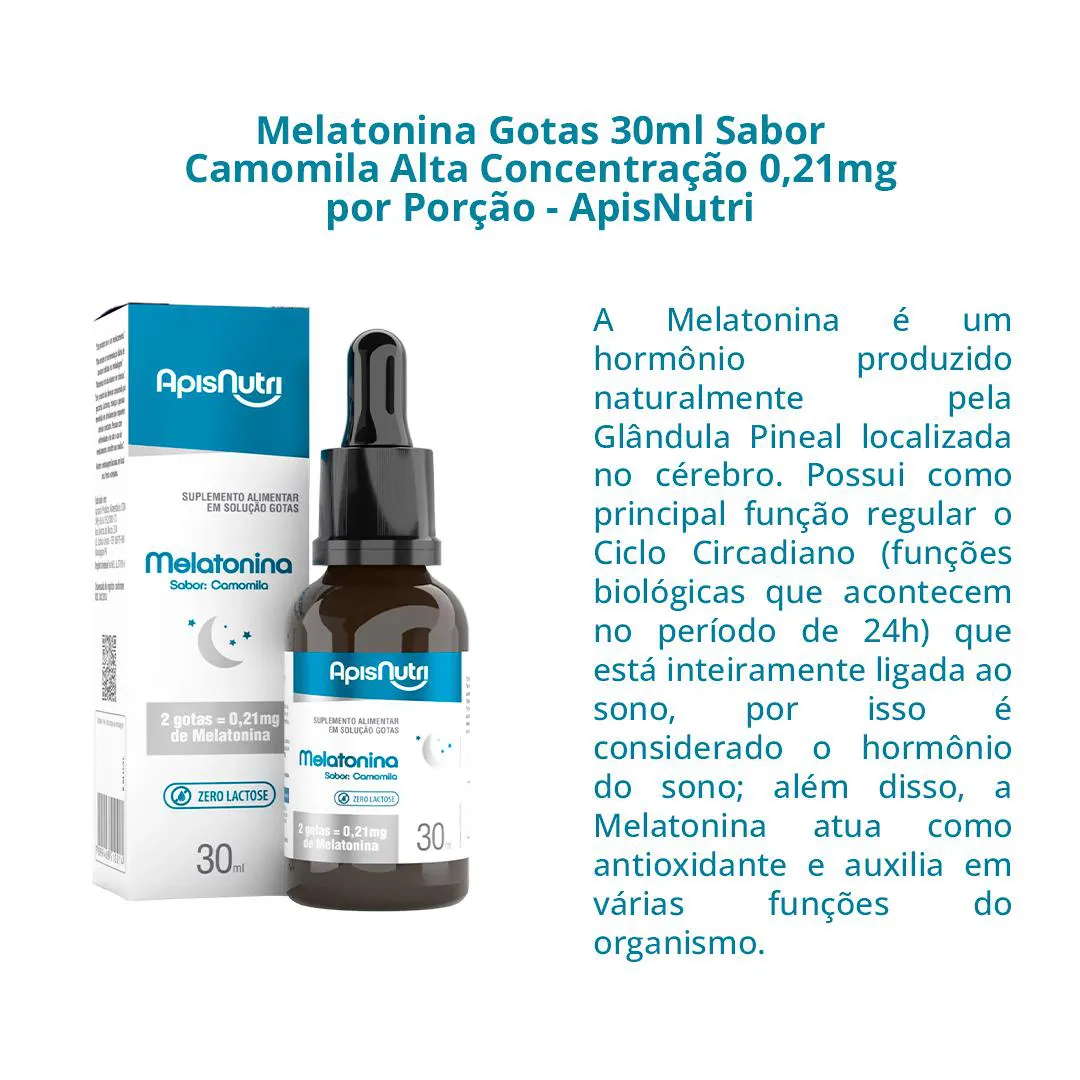 Kit 3 Melatonina Gotas Sabor Camomila Com 30ml – Apisnutri Descrição Técnica: