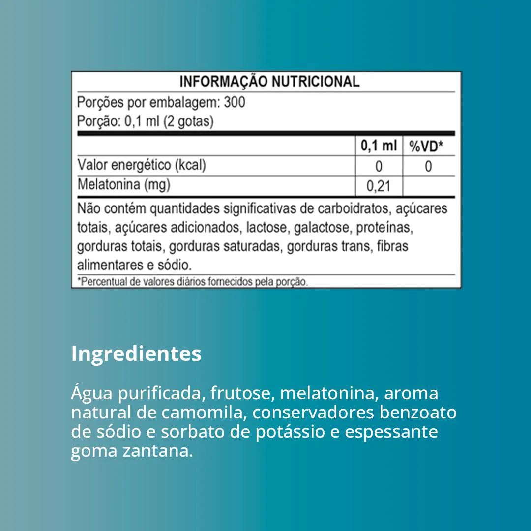 Composição por porção (2 gotas / 0,1 ml):- Melatonina: 0,21 mg