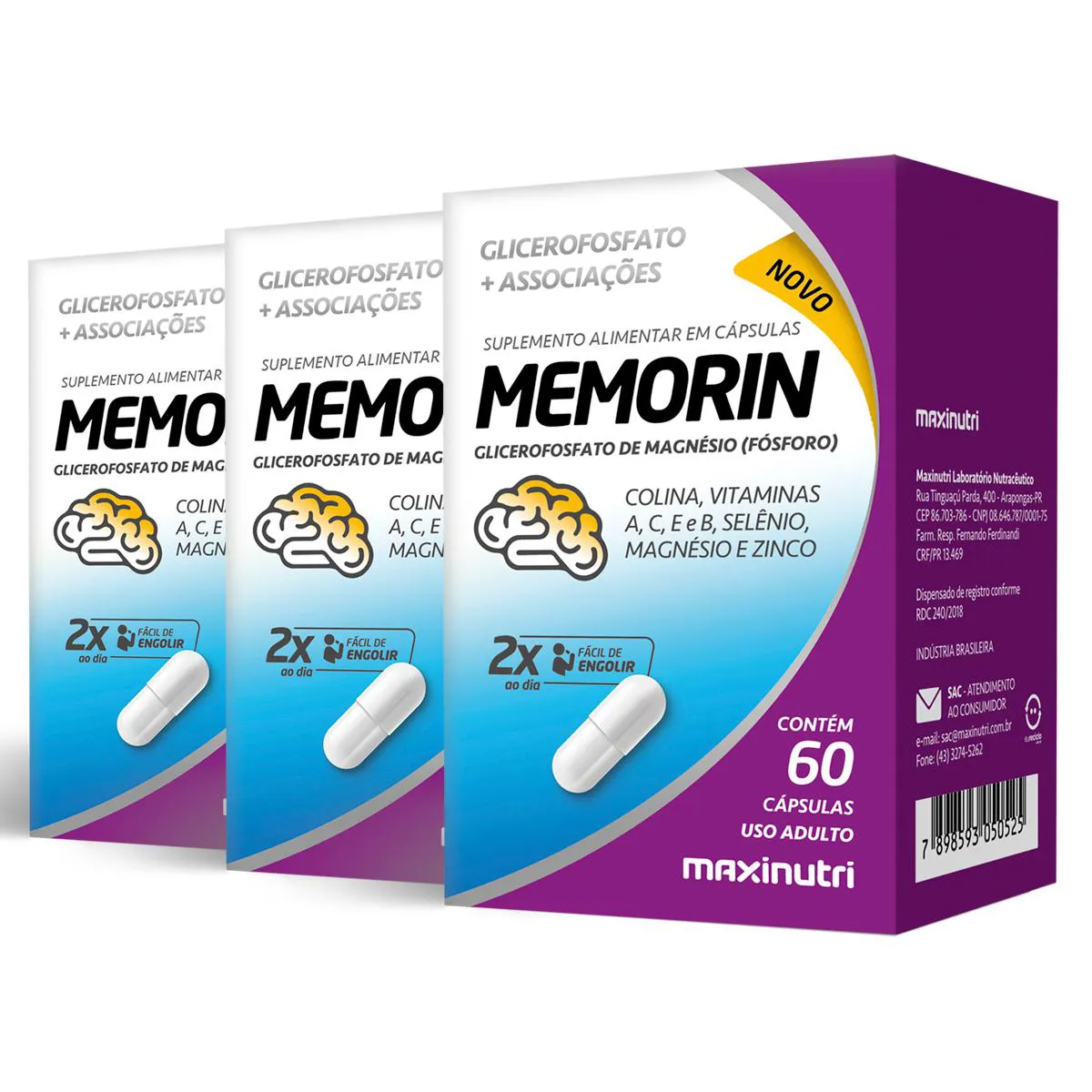 Kit 3 Memorin Fósforo + Vitaminas Maxinutri 60 Cápsulas
