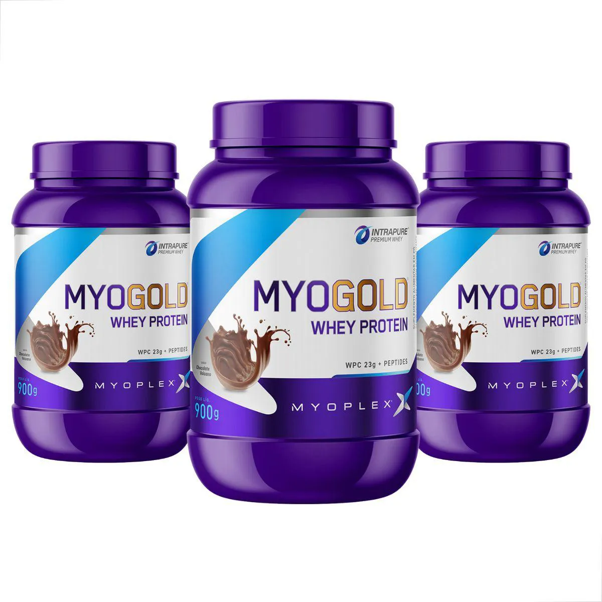 Kit 3 Myo Gold Whey Protein Premium Pote 900G Myoplex Chocolate