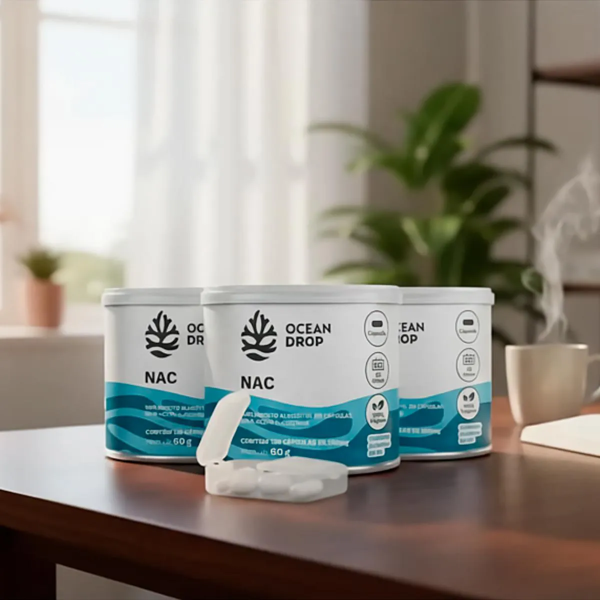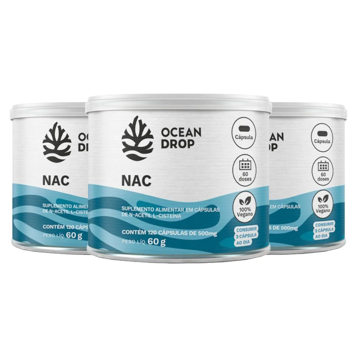 Kit 3 NAC Ocean Drop Vegano 120 Cápsulas + porta cápsulas Ingredientes: