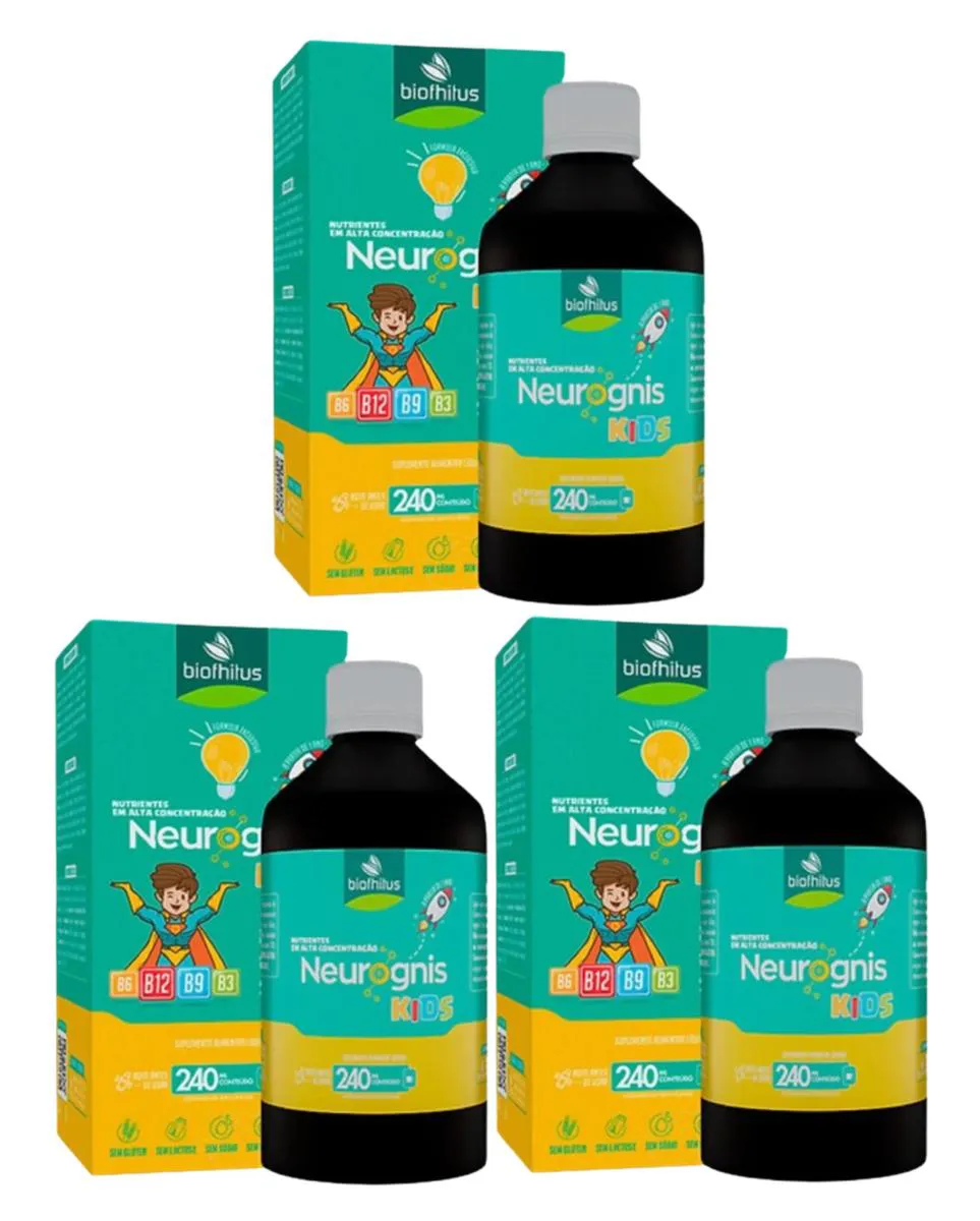 Kit 3 Neurognis Kids Vitaminas B12, B9, B3, B6- 240Ml