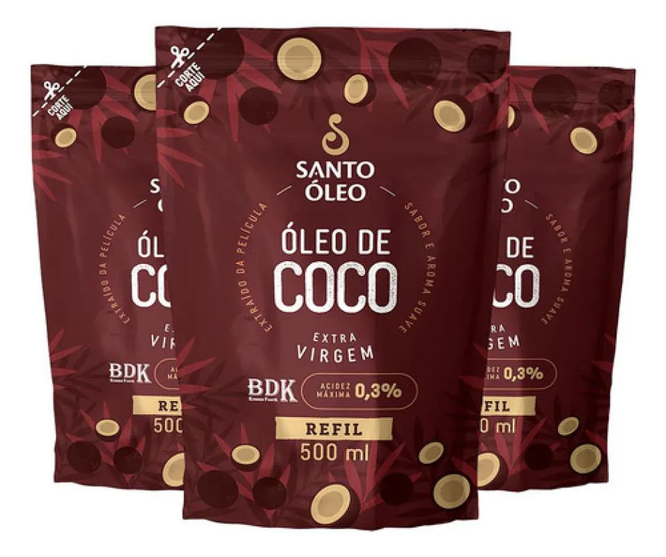Kit 3 Oleo de Coco Extravirgem de Pelicula Refil 500Ml - Santo Oleo
