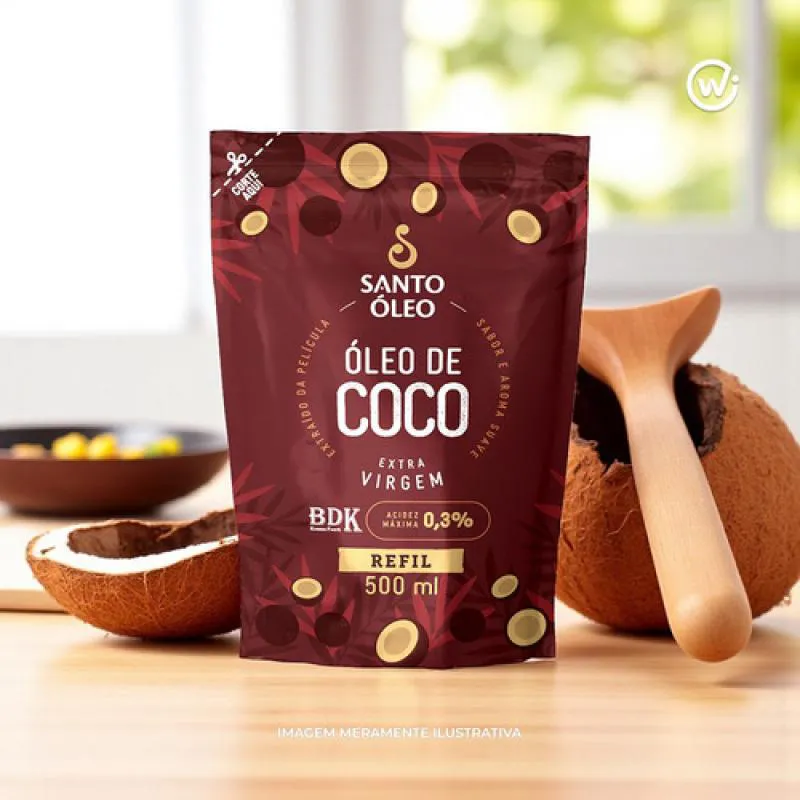 O Óleo de Coco Extravirgem de Película Refil 500 ml, da Santo Óleo, é obtido por prensagem a frio da película marrom que reveste o coco ao invés da polpa branca resultando em um óleo com sabor e aroma mais suaves. Sua acidez é baixíssima (até 0,3%) e possui alto teor de ácido oleico (ômega-9), oferecendo leveza e versatilidade para uso culinário e cosmético. Esta versão refill proporciona economia e menor impacto ambiental, mantendo todas as características originais do produto, porém em embalagem prática.